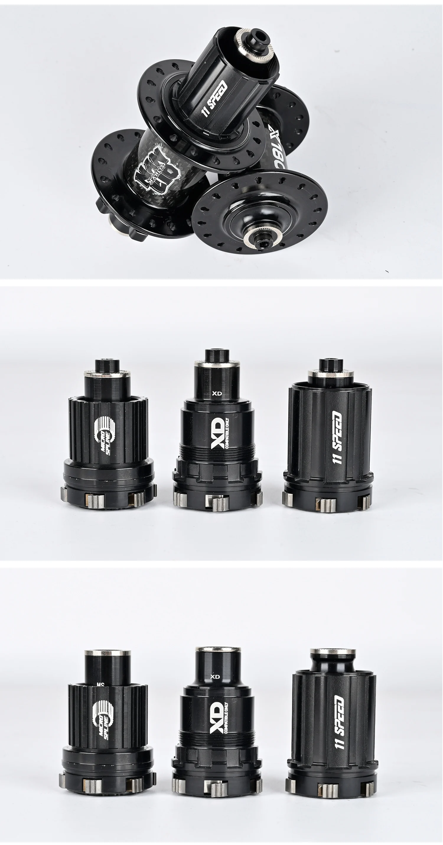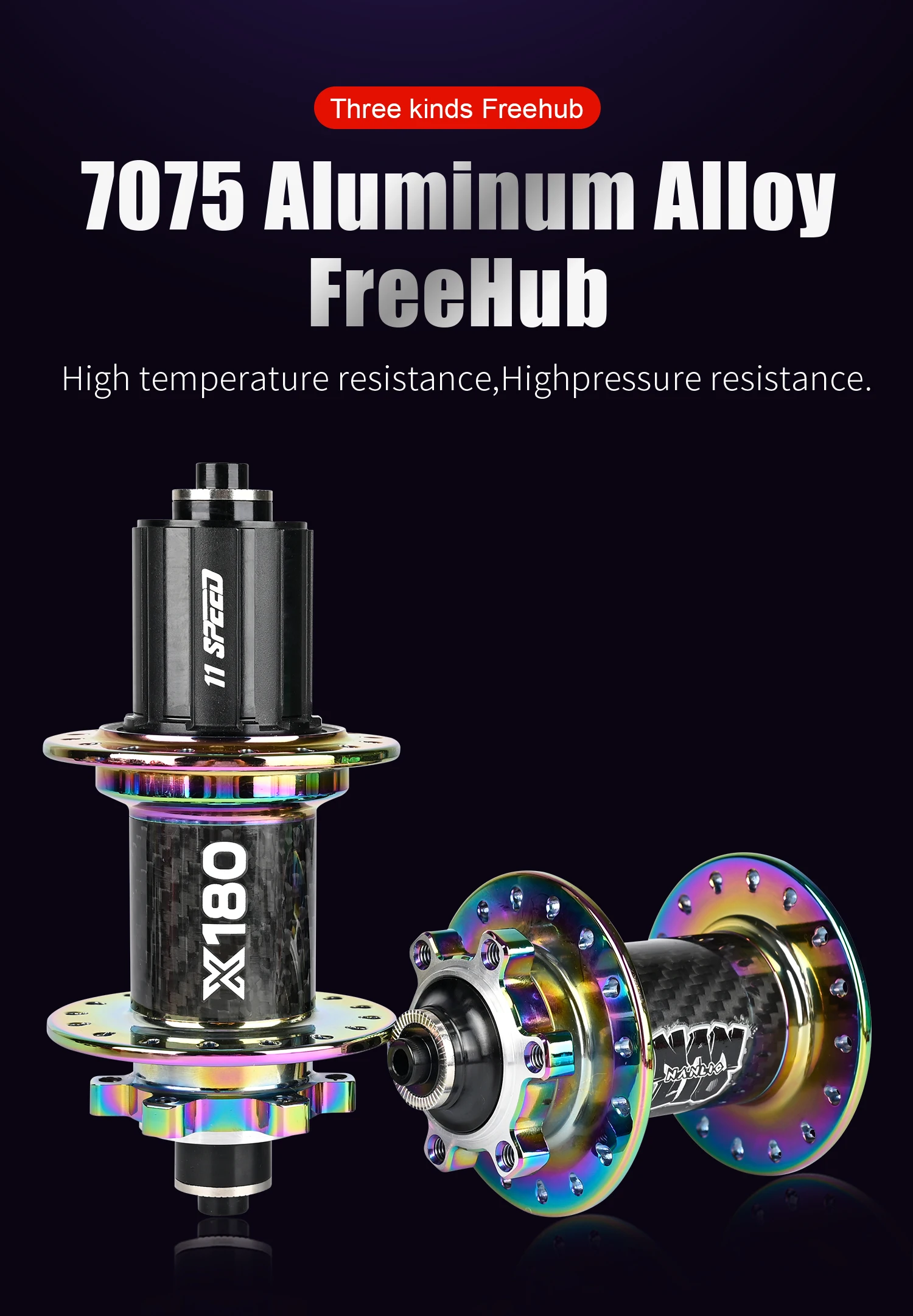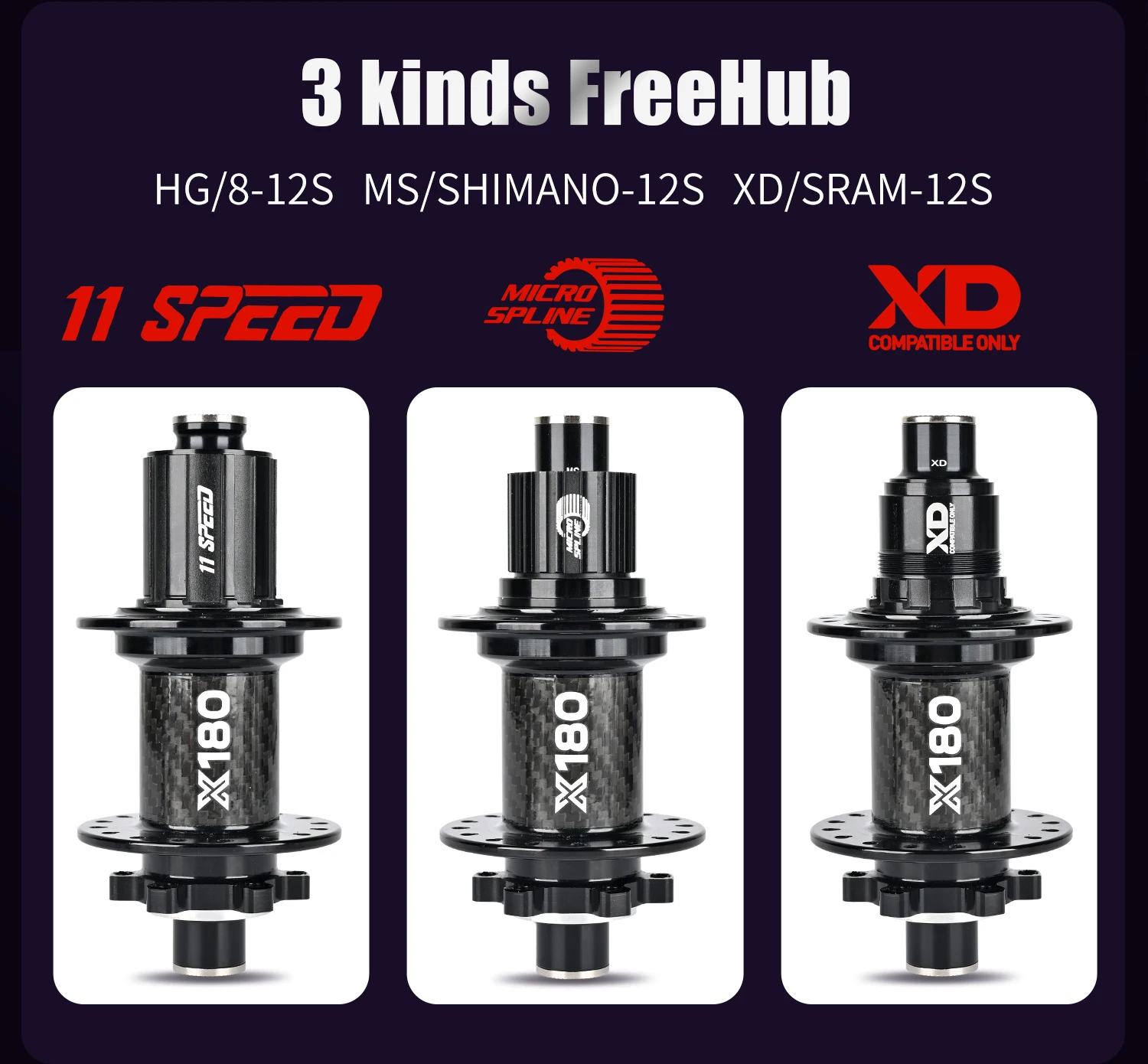 ①、NanLio X180 Carbon Fiber Mountain Bike Hub, crafted with advanced materials, boasts 180 unique sounds, 6 pawls, 180 teeth, and 32 holes, delivering stable and reliable performance for cycling.