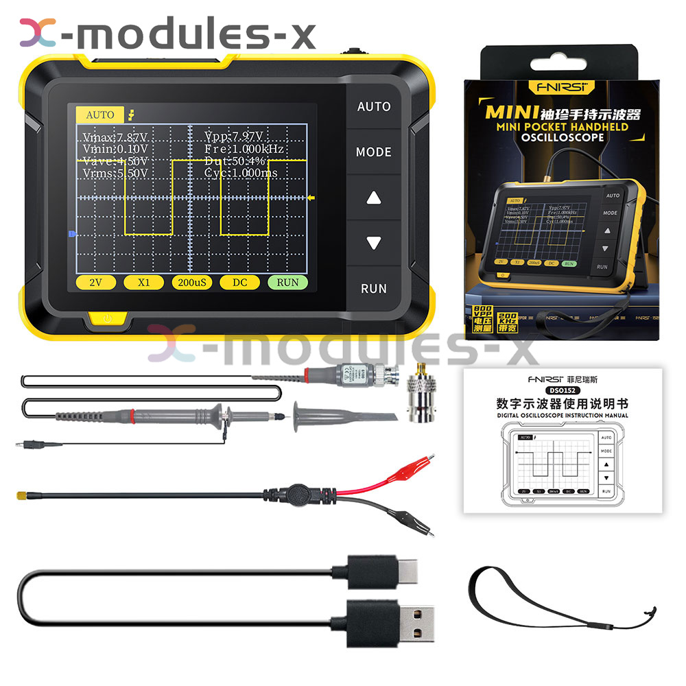 1. The oscilloscope has a real-time sampling rate of 2.5MS/s, 200kHz bandwidth