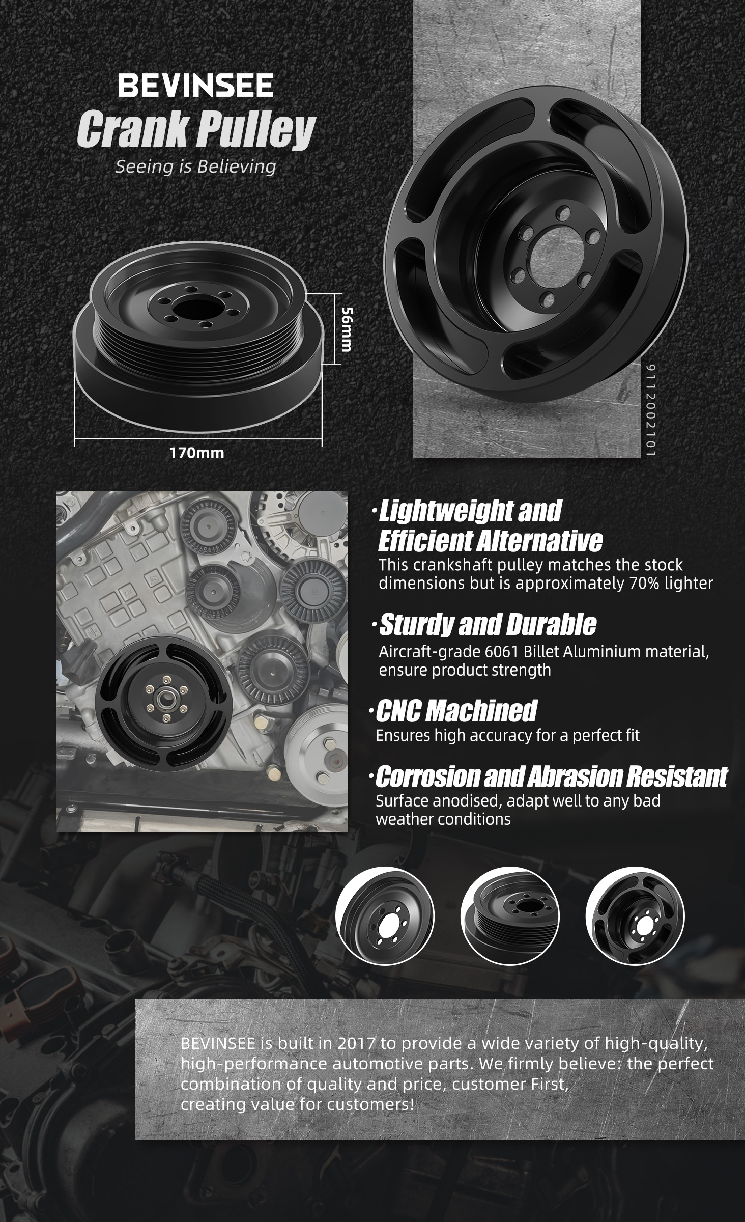 【Leichtgewicht und effiziente Alternative】Diese Kurbelwellenriemenscheibe entspricht den Lagerabmessungen, ist aber etwa 70% leichter.