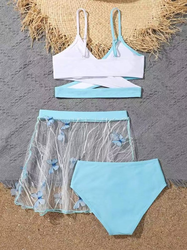 Set Include: 1Pc Girl Swim Top, 1Pc Swim Briefs, 1Pc Beach Skirt