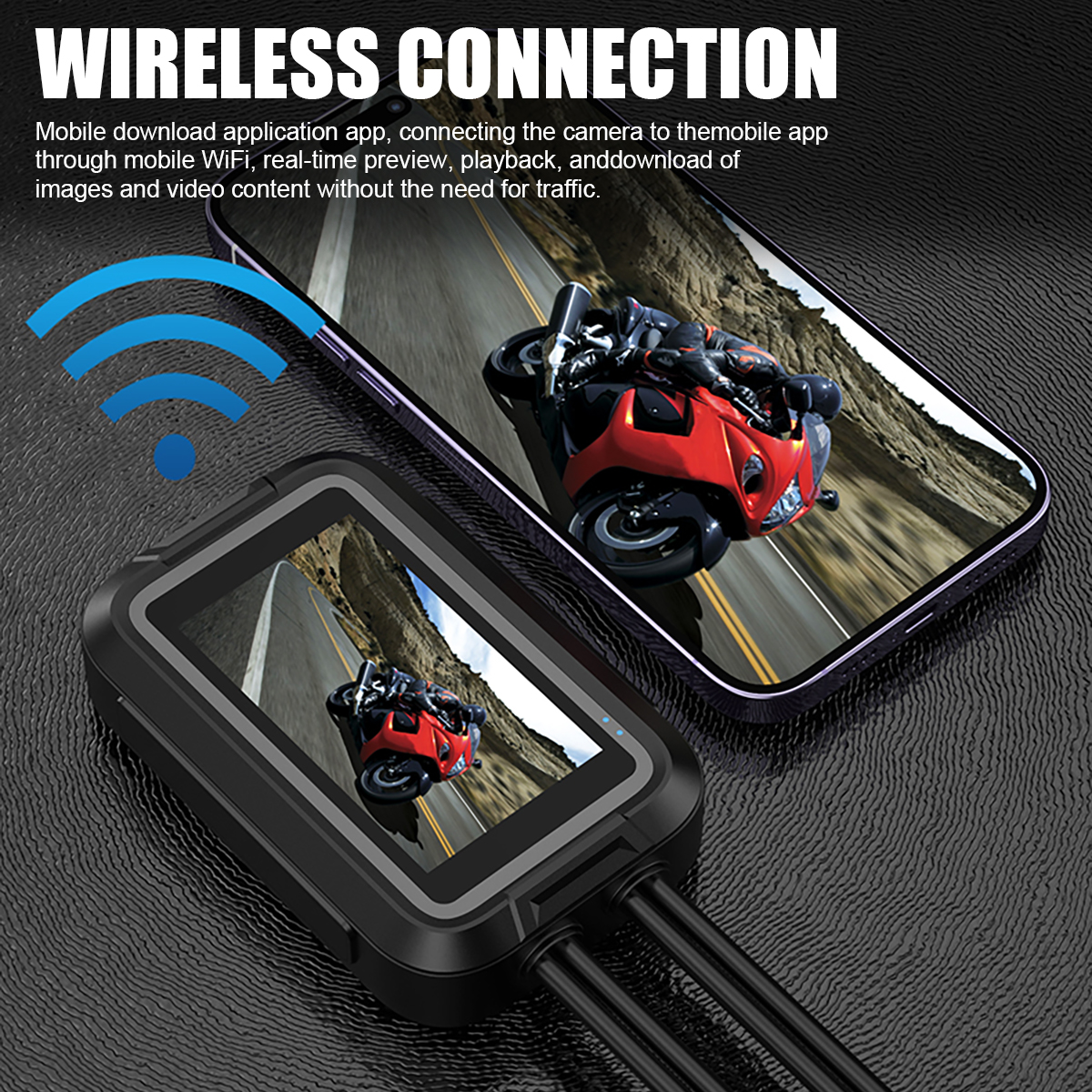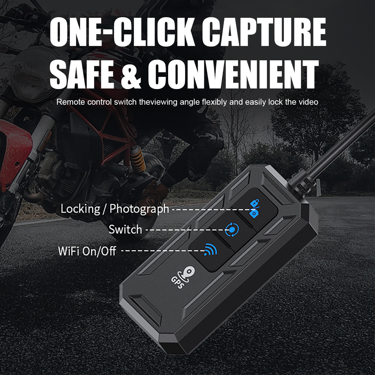 3. Versatile Functionality: This motorcycle video recorder supports various features, including WiFi connectivity, GPS tracking, loop recording, G-sensor for collision detection, and parking monitoring. These functions enhance your safety and convenience while riding, providing an added layer of protection.