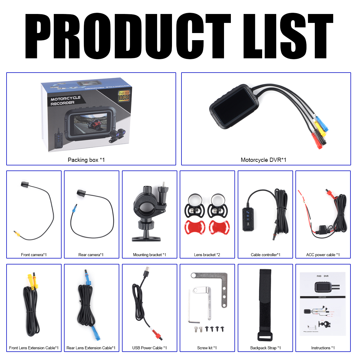 4. Rugged and Waterproof Design: The camera lens (IP66), main unit (IP66), and remote control (IP66) are all designed to withstand harsh weather conditions and provide reliable in any environment. The waterproof rating of riding recorder ensures durability and longevity, making it suitable for motorcycles and other outdoor vehicles.