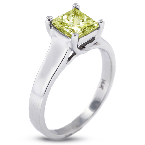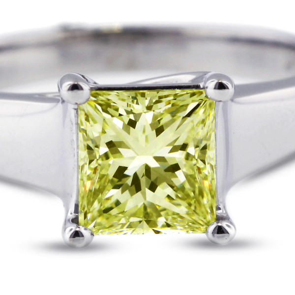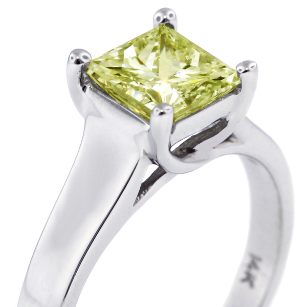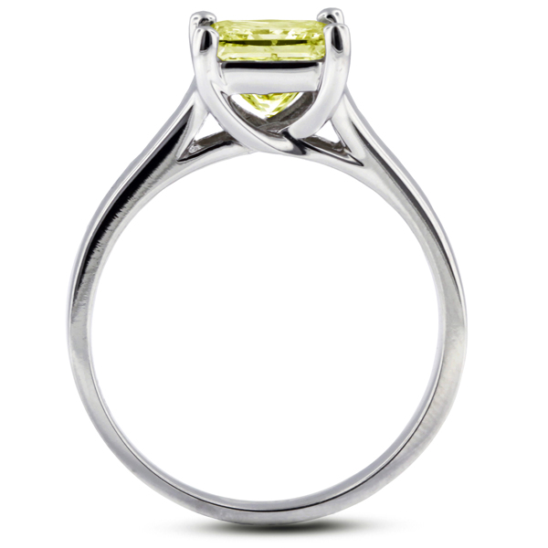 2.67ct Yellow SI1 Princess Natural Diamond 14k Solitaire Engagement Ring