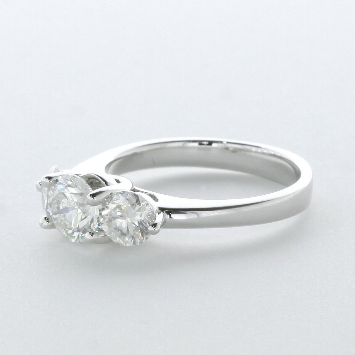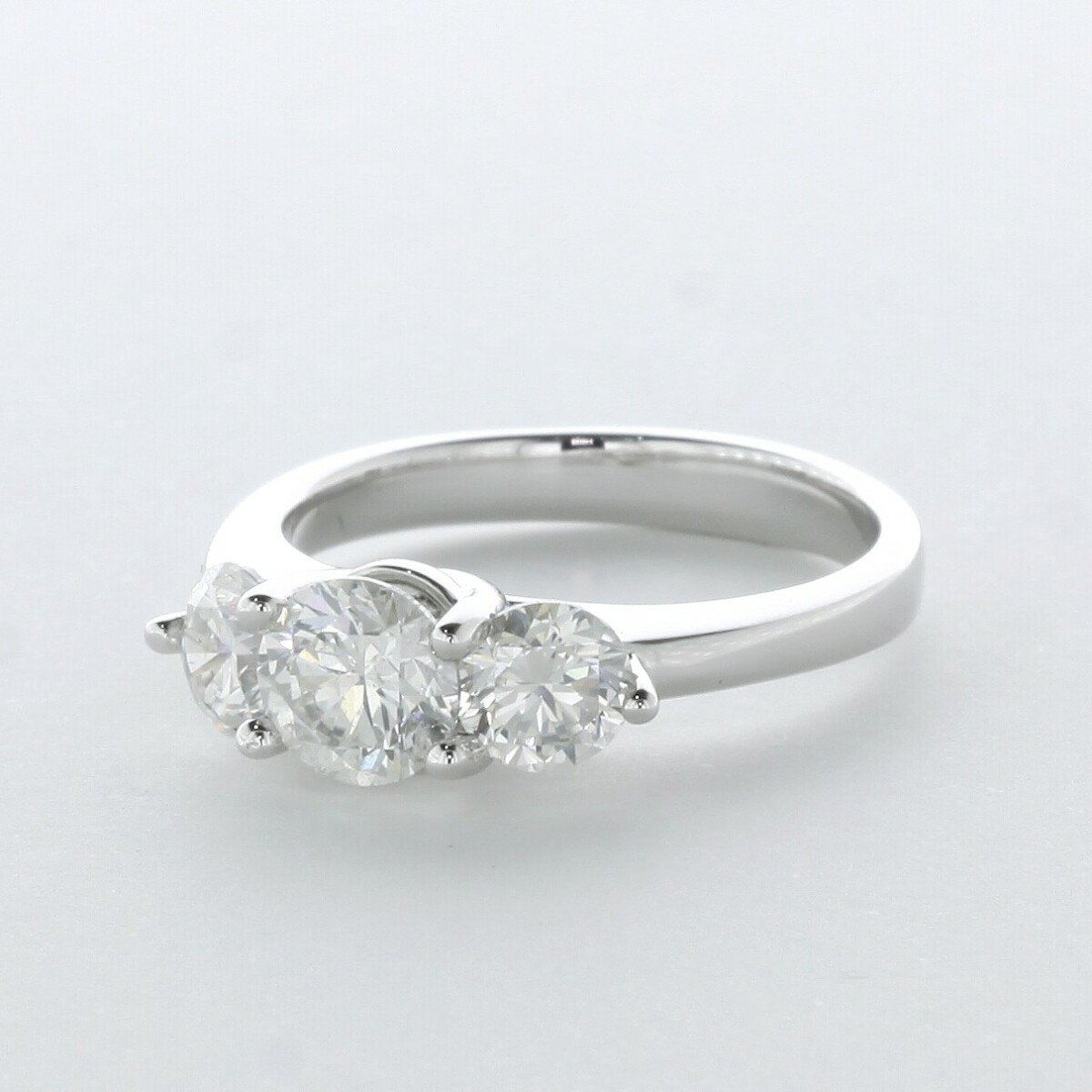 that flawless moment when the jewelry box opens2.5CT LAB-CREATED DIAMOND E/VVS1 VERY GOOD CUT ROUND BRILLIANT 14K WHITE GOLD PRONG SETTING CLASSIC THREE-STONE RING