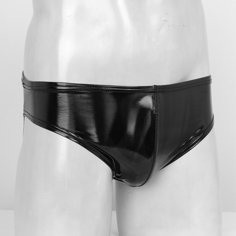 Mens Wet Look Patent Leather Briefs Underwear Elastic Waistband Underpants.