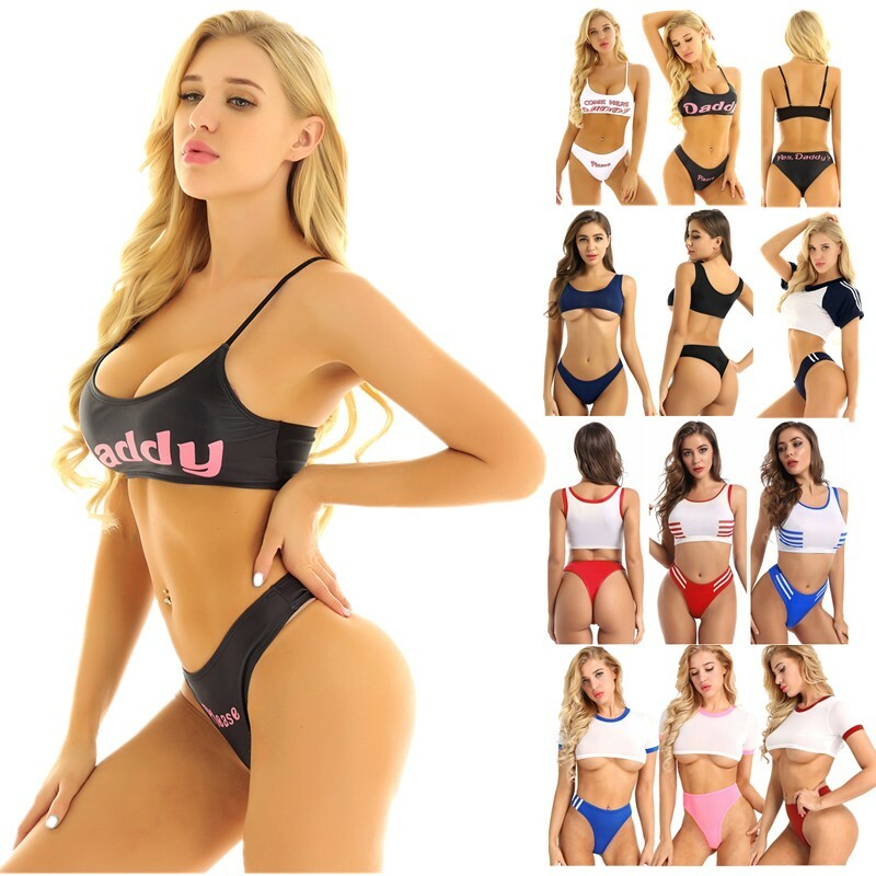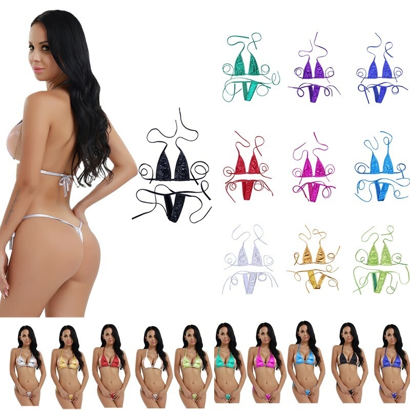 Bandage bikini include halter top and stretch T-back, movable bras to adjust distance for a perfect fit.