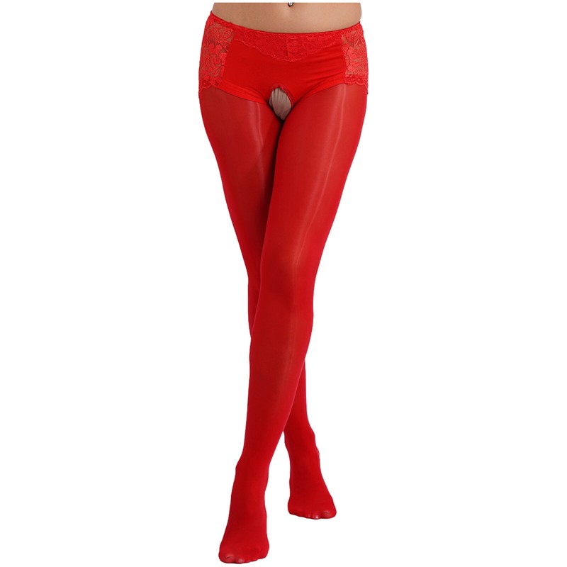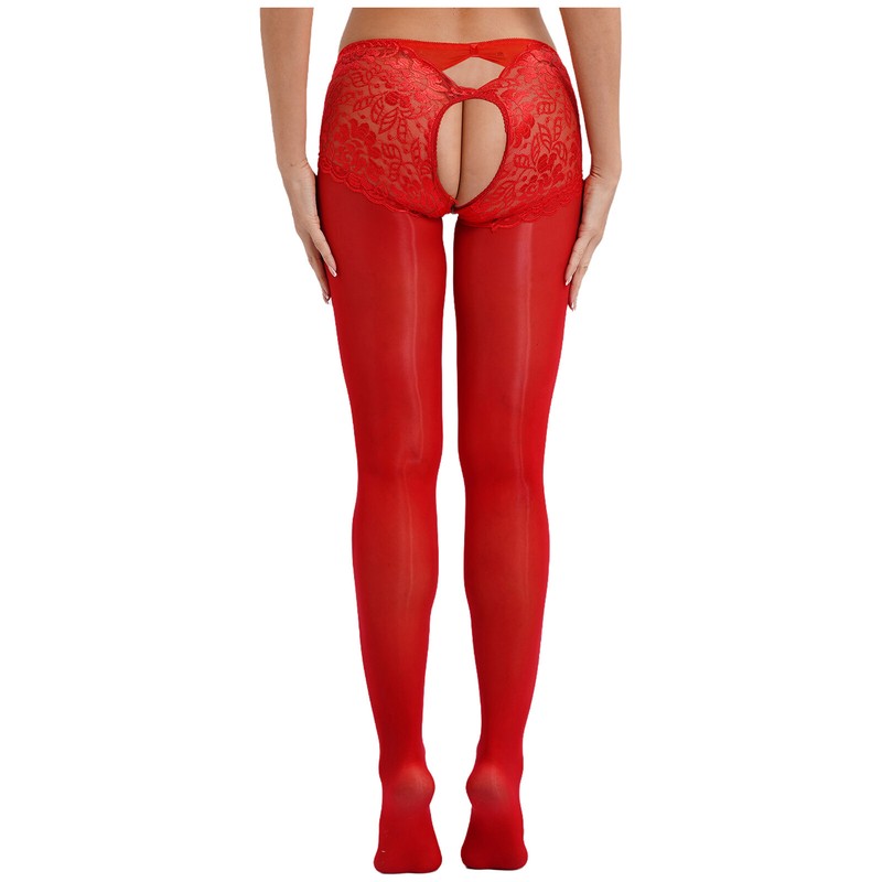 Crotchless desigh will bring more fun and convenience. See-through lace and oil shiny fabric patchwork adds endless mystery and teasing.