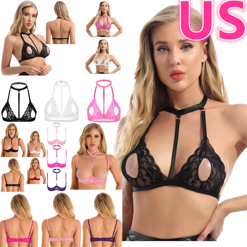 Halter neck bra crop top, with bust open design, backless, hook and loop fasteners closure.