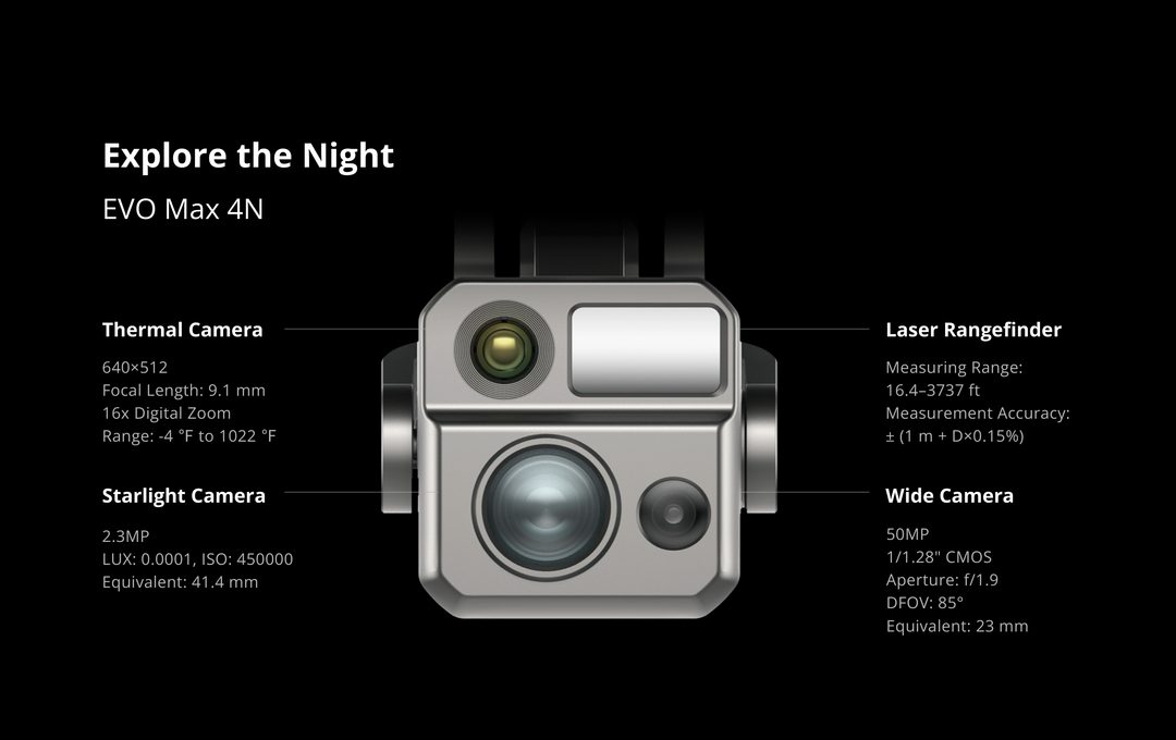 | EVO Max 4N Weight | 3.62 lbs (1641g, battery and gimbal included) |