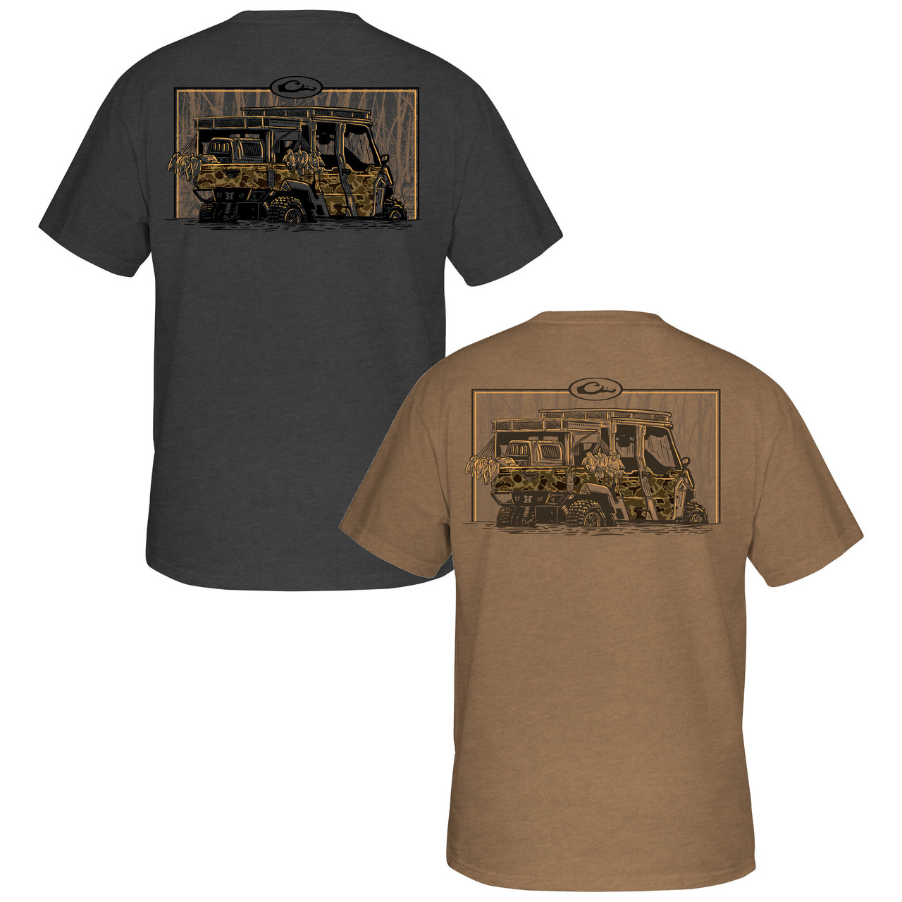 The Drake Waterfowl Graphic Tee is constructed with a 60% cotton and 40% polyester blend which supplies softness and comfort. The Drake Waterfowl Graphic Tee has a Drake logo on the front pocket and depicts a side x side in the field. From our Trucks of Drake Series of back graphic tees.
