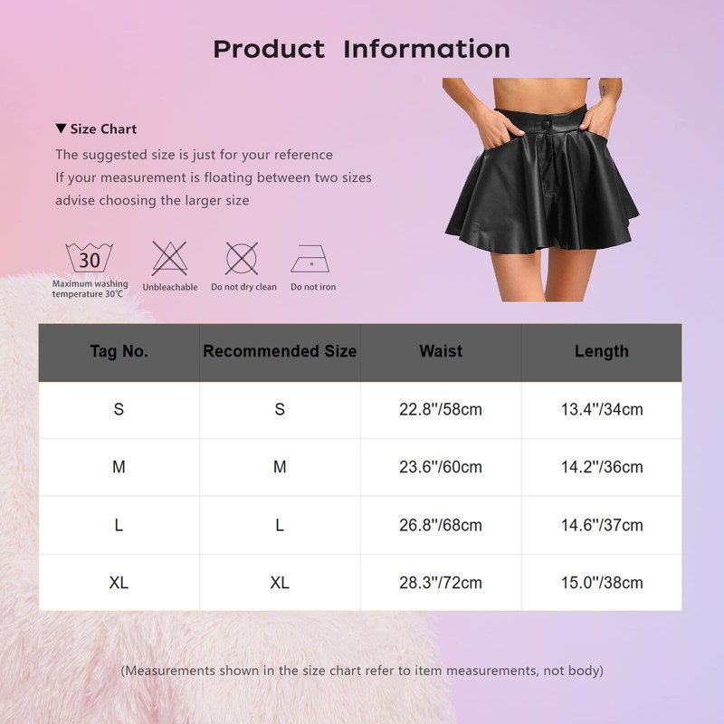Pu leather surface brings a unique luster, this shorts can match with camisole, shirt, blouse for a fashion look.