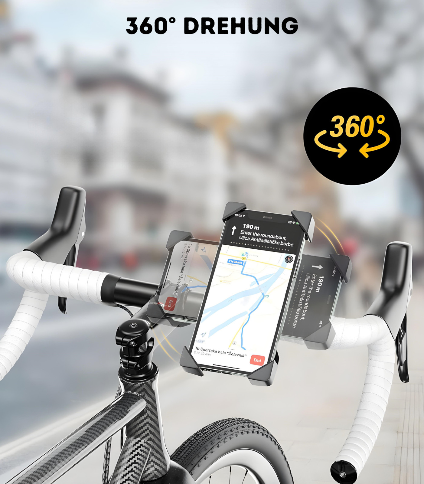 Die NFde® Handyhalterung sorgt für sicheren Halt Ihres Smartphones – selbst auf unebenen Strecken. Dank 360° Drehung lässt sich der optimale Blickwinkel für Navigation, Musik oder Fitness-Apps jederzeit einstellen.
