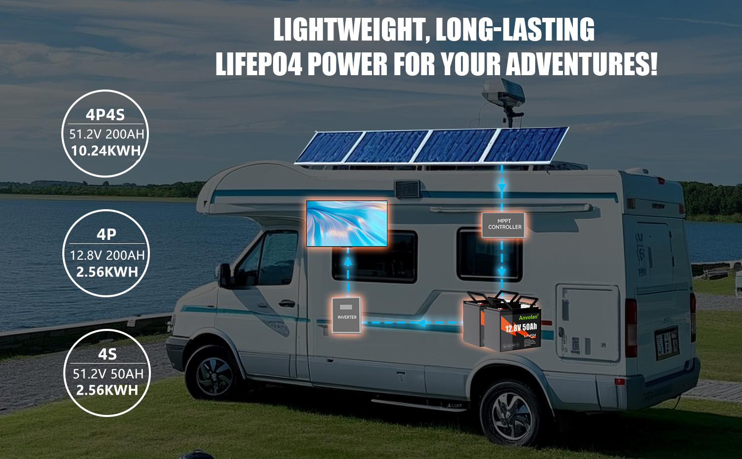 4X Anvolan 12V 50Ah LiFePO4 Battery AS Picture Shown