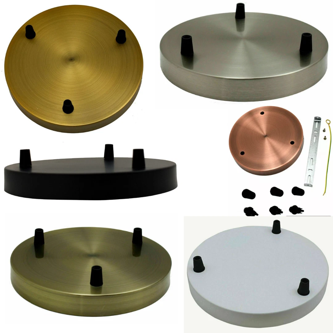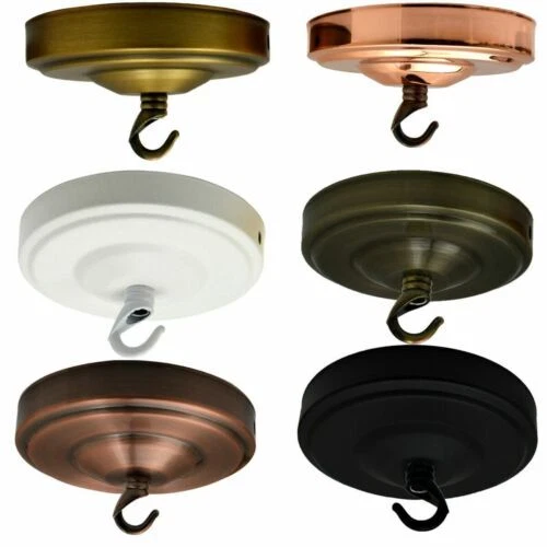 Hochwertiger Deckenbaldachin aus Metall für Lampen und Pendelleuchten. Ideal als Ersatz für alte Deckenrosetten oder für Neuinstallationen. Erhältlich in Schwarz, Kupfer, Weiß und französischem Gold. Mit Schrauben und Haken zur Kabelführung.