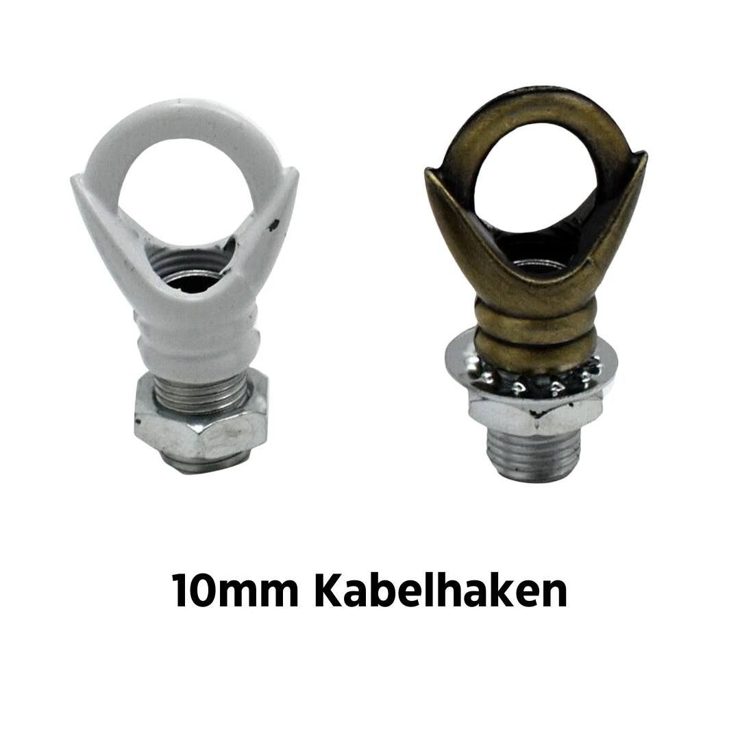 Der Haken passt auf Armaturen mit einem 10-mm-Gewinde und lässt das Kabel im Inneren
