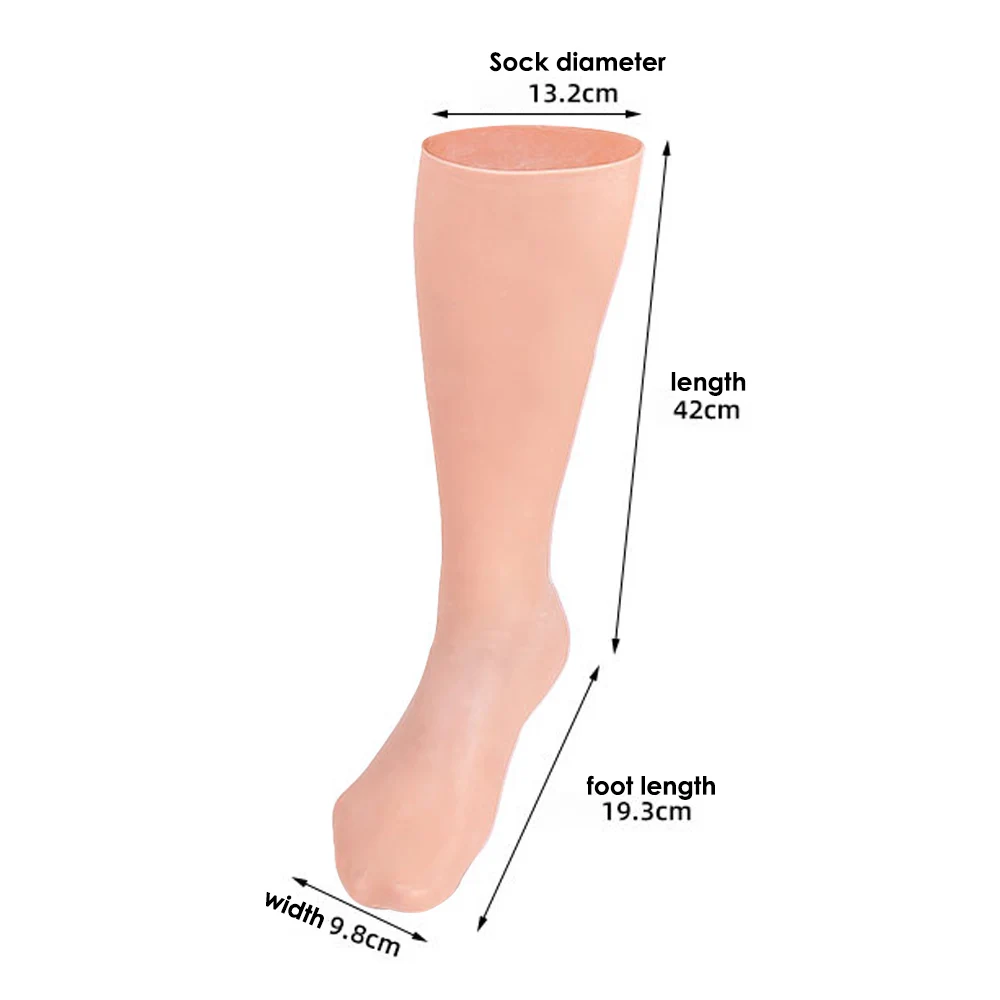 Foot Length: 19.3cm, Foot Width 9.8cm, Tube Length: 42cm, Sock Diameter: 13.2cm
