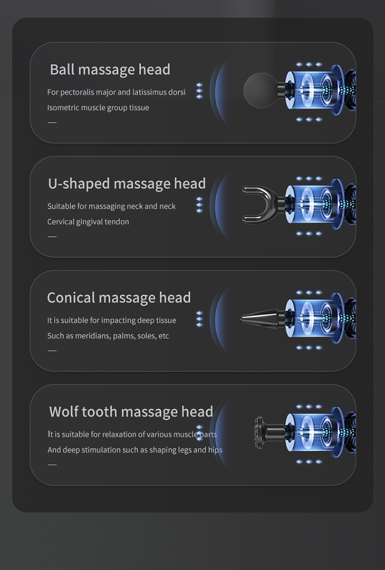 Four professional massage heads Take care of every muscle group