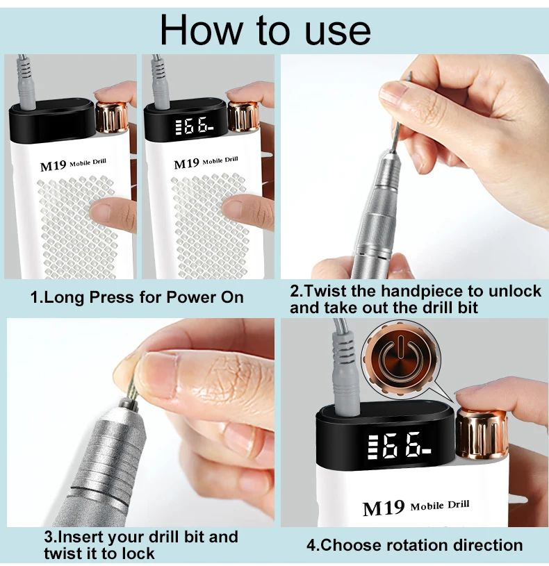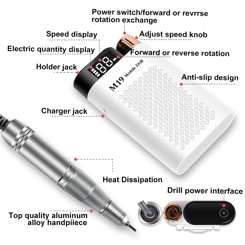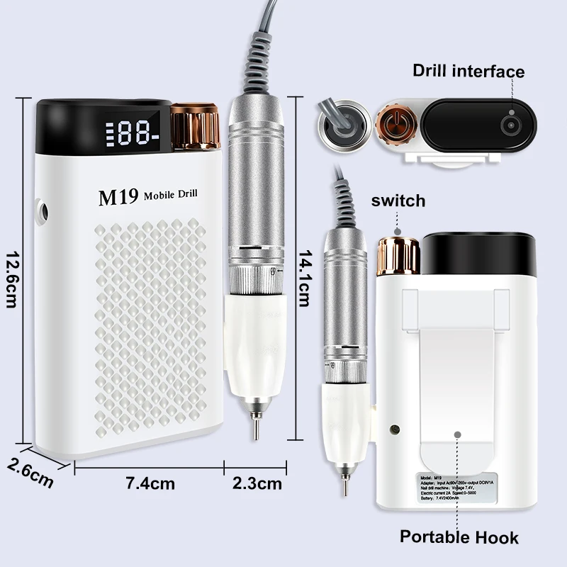 Function: manicure drill, portable power bank, charging port