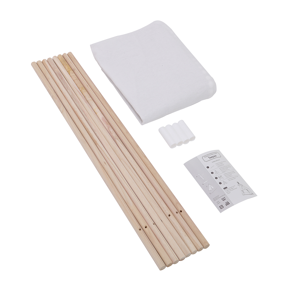 【Material and Size】: These Girls teepee tents are made of 100% natural, non-toxic, unpainted cotton canvas. The tent poles are made of sturdy pine wood and are free of chemical odors and harmful substances. Size(L x W x H): 55 x 55 x 57.8 inches.