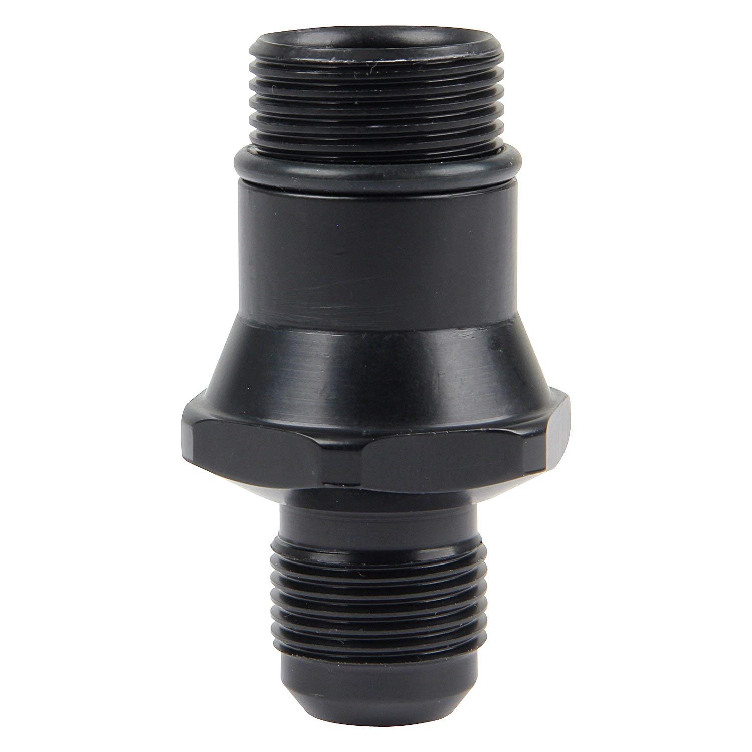 Allstar Performance -12AN fitting, black, for race car cooling systems. Connects water pump components for reliable coolant flow in racing. Hand-tool compatible for track use.12 AN Male to 1-1/4-12 in O-Ring. Black Anodize.