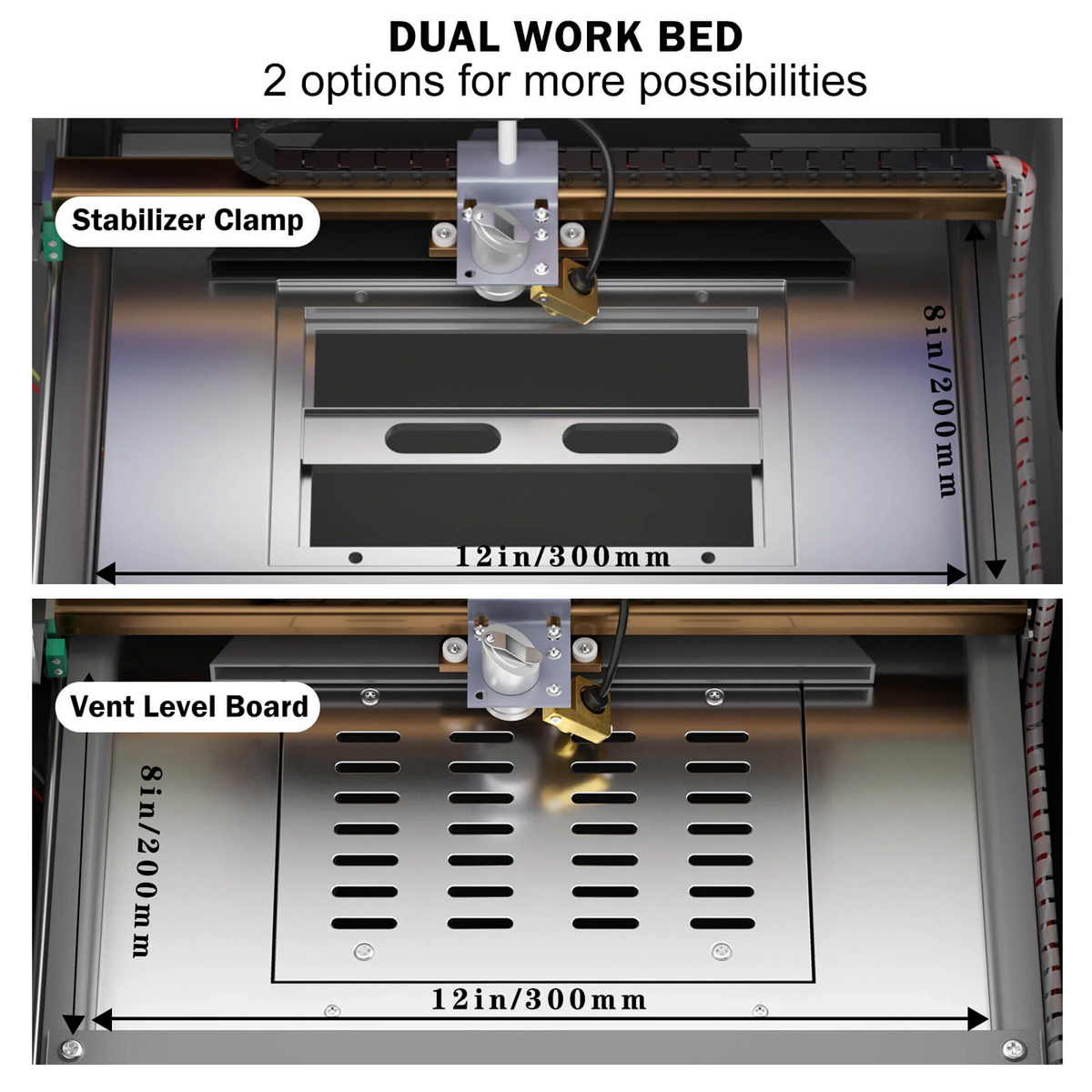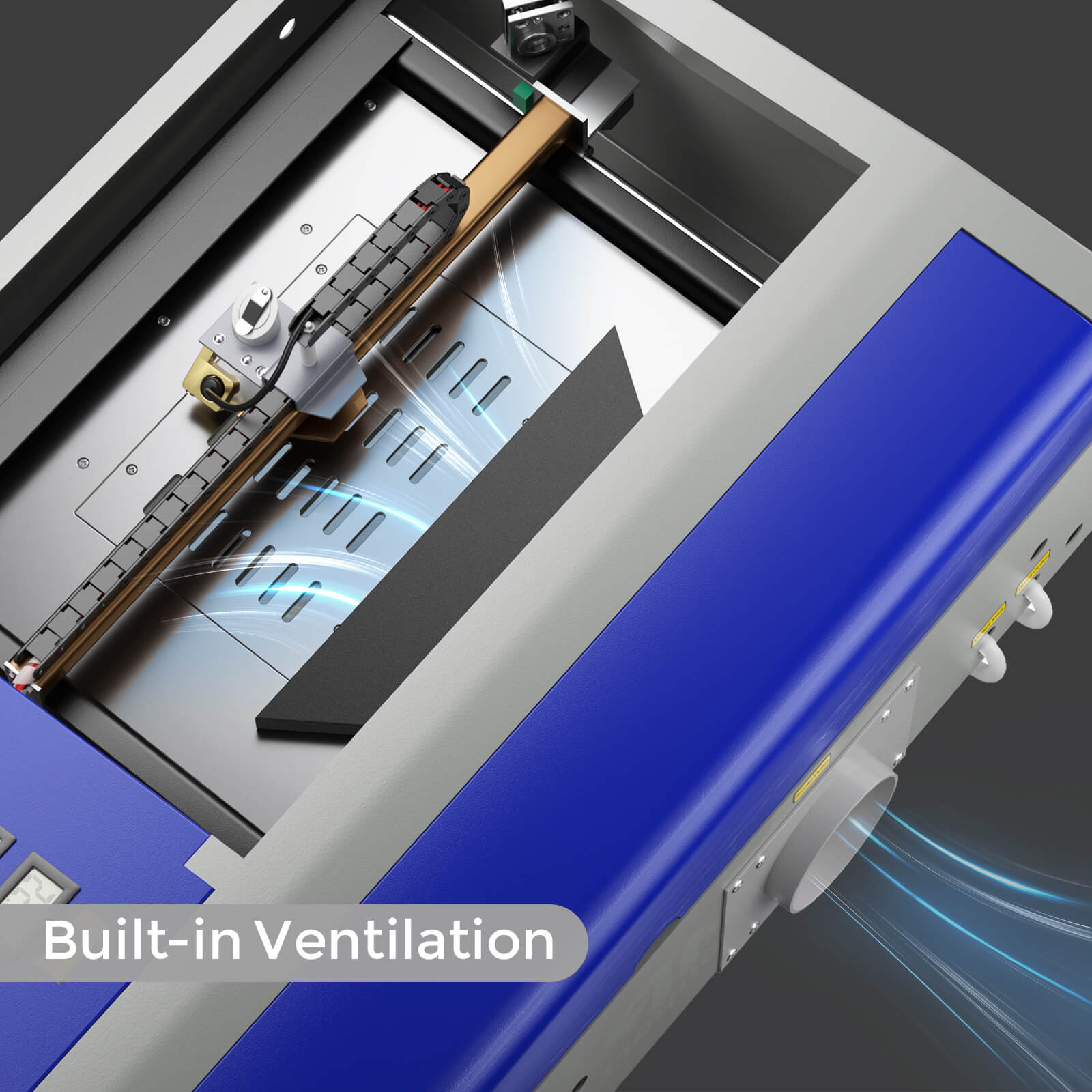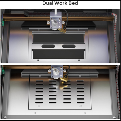 40W engraver support Dual workbed to compatiable for your work. Our high-performance exhaust system works perfectly with our built-in fan, directing hazardous debris away from the engraving surface and into your ventilation system, enhancing your work quality and safety. |