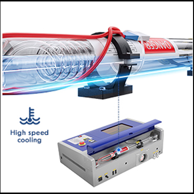 The easy setup water cooling system, including a compact water pump & built-in hoses. Laser Tube Lifetime Up to 2,000 operation hours depending on power setting. |