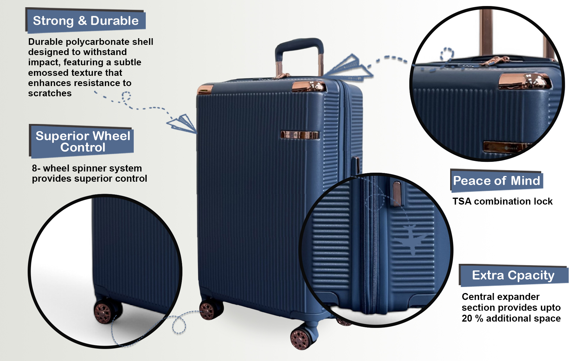 - 8-Rad 360 ° Spinner-System: Mit acht glatten Spinnerrädern ausgestattet, ermöglicht dieses Set mühelose 360-Grad-Manövrierfähigkeit, wodurch navigierende Flughäfen und Bahnhöfe zum Kinderspiel gemacht werden.