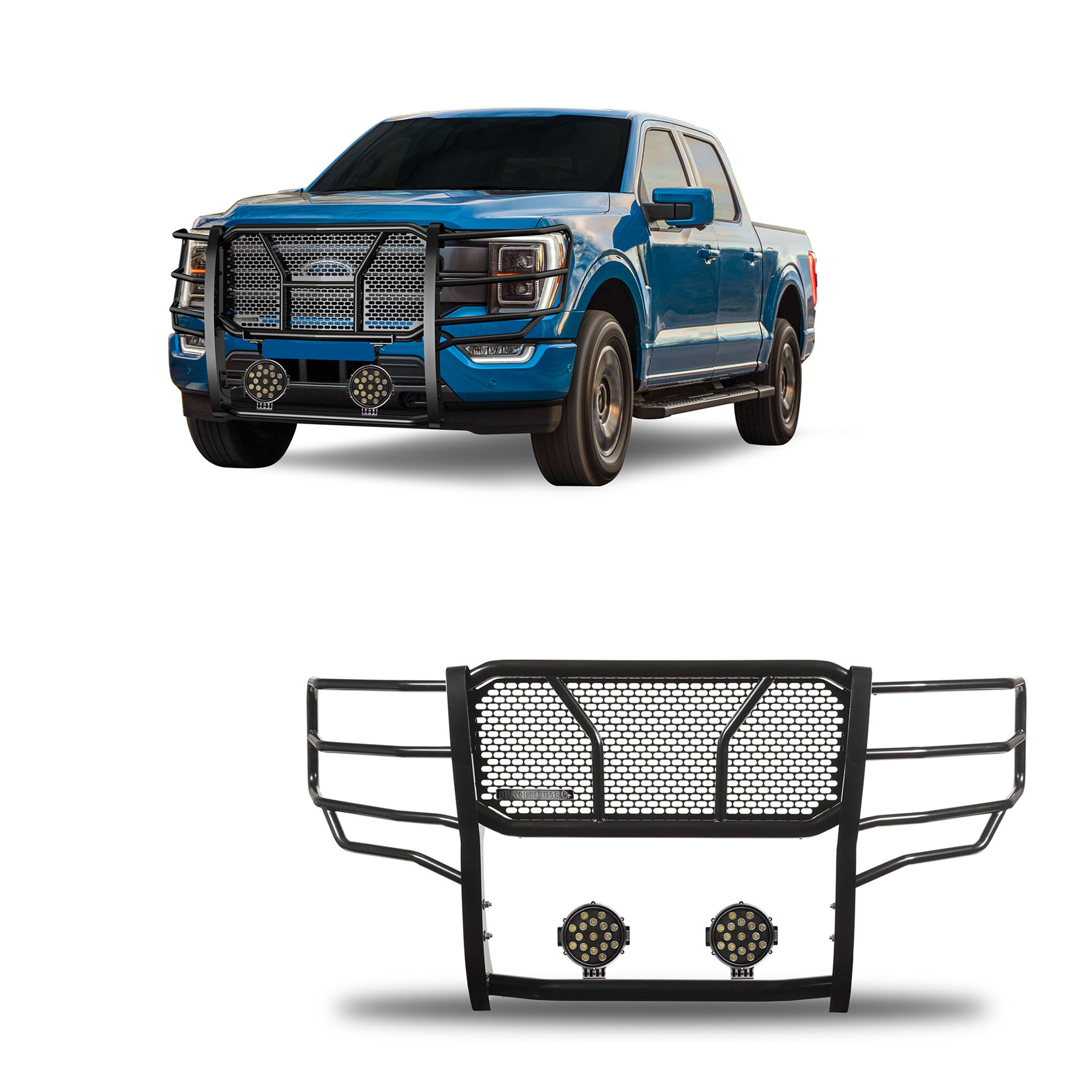 Rugged Heavy Duty Grille Guard Kit Black Horse Off Road Rugged Heavy Duty Grille Guard Kit Black Steel Modular 2nd Box: 36 x 25 x 10 inches & Incl. pair of 7.0" Dia. LED Lights w/ Black Trim Rings w/ Wiring Harness and Switch Incl. F150 EcoBoost / Excl. all F150 Raptor models, 20-22 Diesel models and 22-23 F150 Lightning EV It May Interfere with Vehicles equipped with Emergency Braking Systems, Adaptive Cruise Control and Parking Sensors Black Horse Off-Road Rugged Series Modular Design Black Grille Guard RU-FOF116-B-PLB - compatible with 2021-2024 Ford F-150 Patent Approved No-Drill/ Vehicle-Specific Application for Custom Fit Solid frame-mounted bolt-on, no drill installation 3-piece bolt-together construction