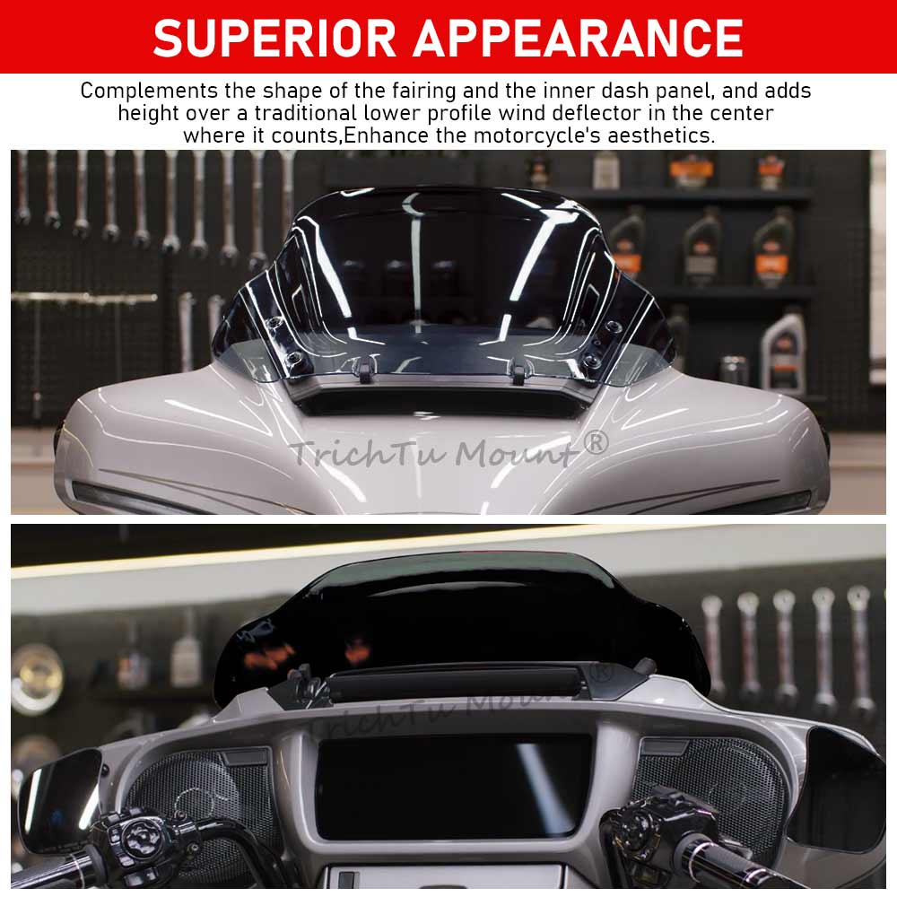 1. Complements the shape of the fairing and the inner dash panel, and adds height over a traditional lower profile wind deflector in the center where it counts,Enhance the motorcycle's aesthetics.