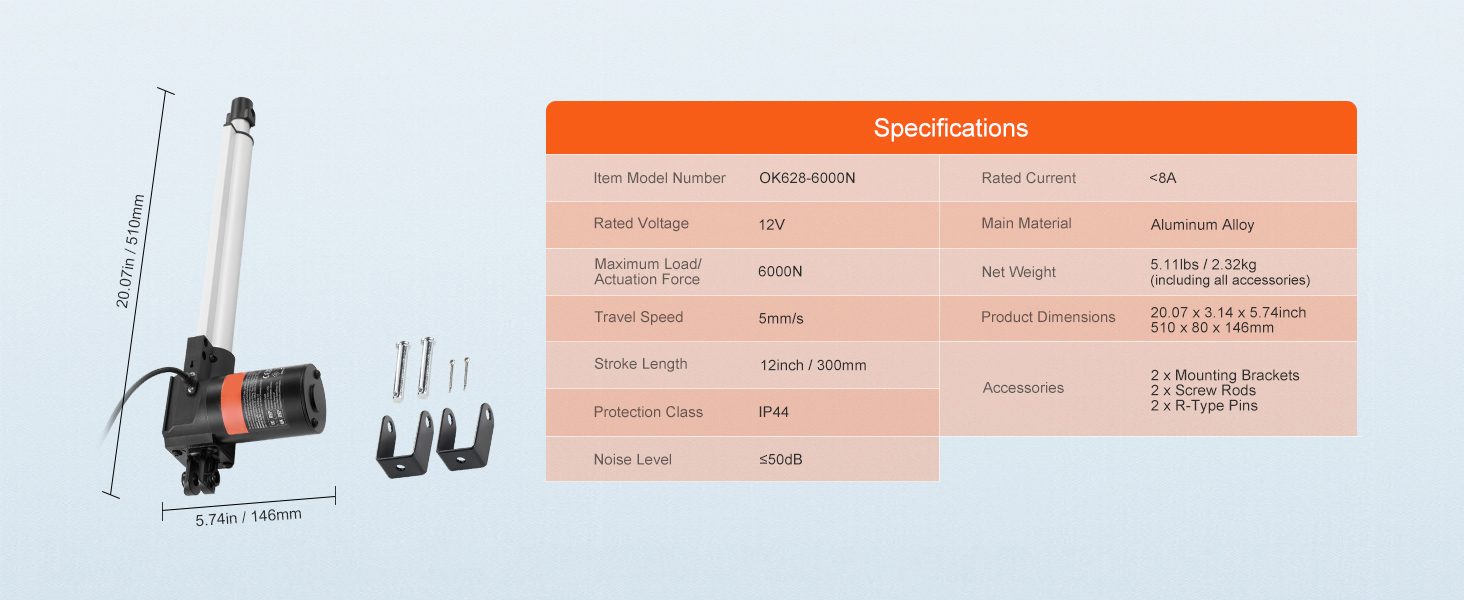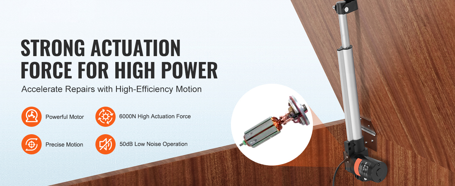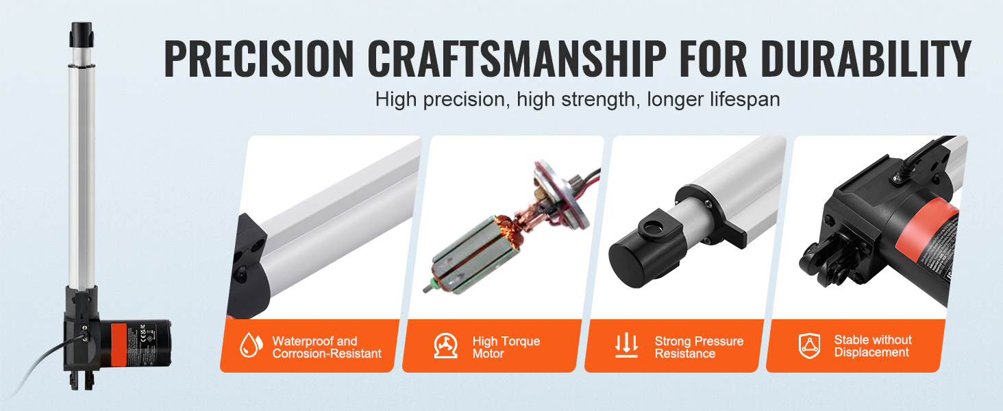 Handle heavy-duty tasks with VEVOR 12-inch linear actuator. Featuring precise and steady motion at 0.19"/s and robust 1320lbs actuation force, it offers reliable support and efficient motion for industrial automation, heavy-duty lifting systems, mechanical equipment, transportation, and beyond.