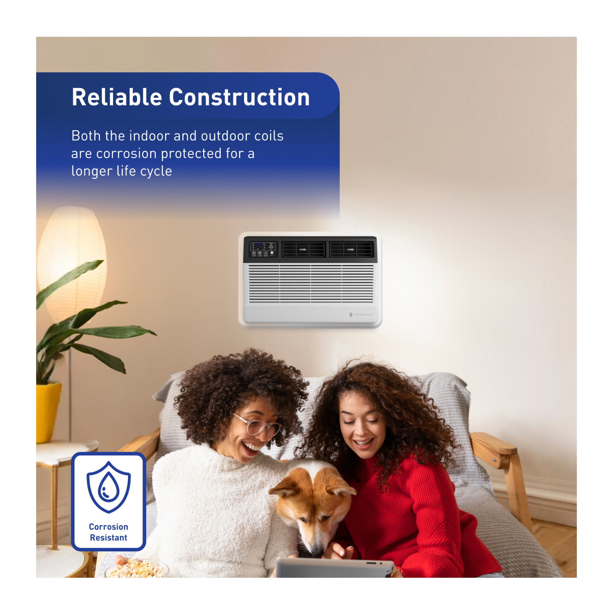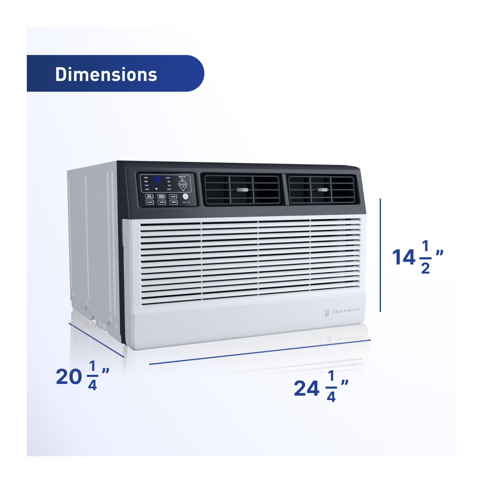 The Friedrich Uni-Fit Smart Thru The Wall Air Conditioner for Cooling and Heating offers outstanding energy efficiency. A universal fit for existing sleeves from 24.5-27-inch. It comes with a two-piece trim ring that fits over the chassis front. The Uni-Fit Air Conditioner utilizes A2L-compliant R-32 refrigerant helping you contribute to decarbonization goals while enjoying more energy cost savings. The air conditioner is equipped with a cooling capacity of 12,000 BTU and a heating capacity of 10,600 BTU. It arrives in recyclable packaging.