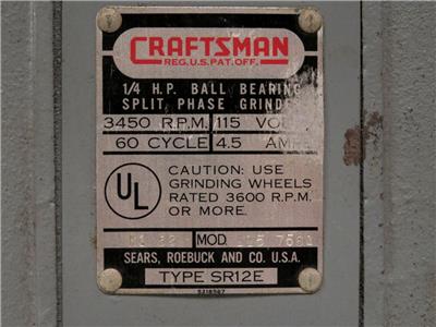 Up for your consideration is a very nice Craftsman 1/4 HP ball bearing split-phase bench grinder, which recently became available through an estate liquidation. This classic tool measures about 16.5" wide x 7.5" deep x 9" high, and it operates on 3450 RPM, 115V, 60Hz, & 4.5 Amps. While it shows some signs of light use, such as chipped paint, surface wear, and some light rust, it has been tested in great working condition, and it is fully functional. Please take a moment to review the detailed photos for a closer look.