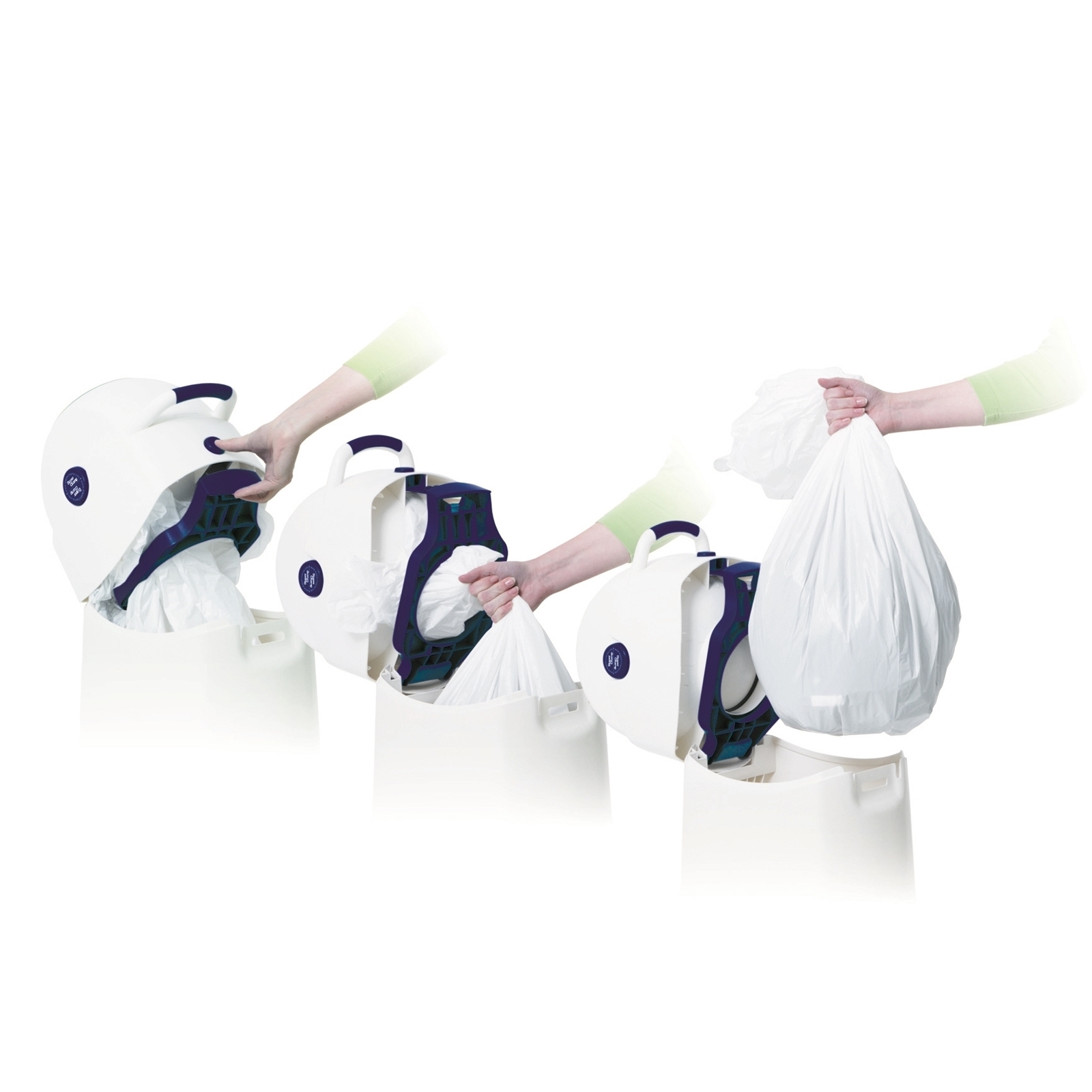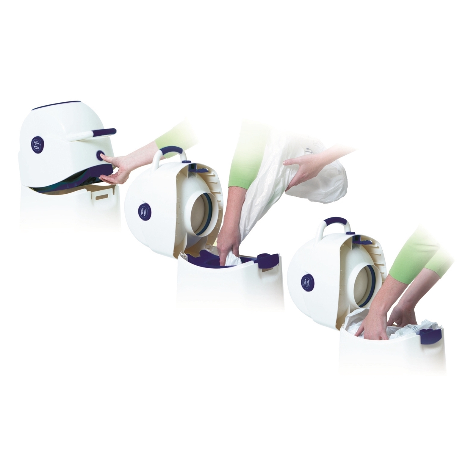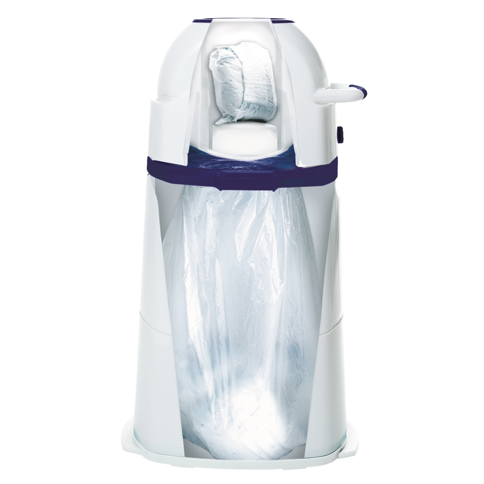 - Durch einfaches Drehen des Kopfteils fällt die Windel in den Müllsack.