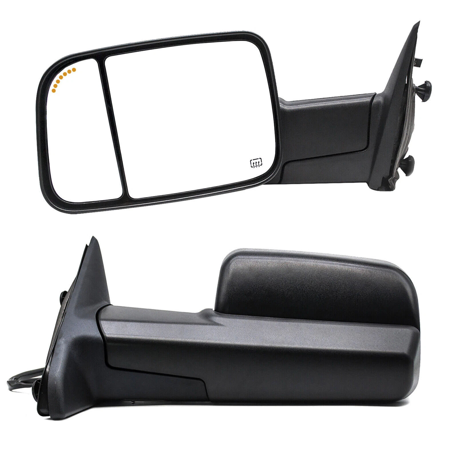 Towing Mirrors For 2012-15 Dodge Ram 1500 2500 3500 Truck Trailer Manual Flip-Up Towing Mirrors for 09-18 Ram 1500 2500 3500 Power Heated Signal Puddle Sensor Towing Mirrors for 09-18 Ram 1500 2500 3500 Power Heated Signal Sensor Chrome Towing Mirrors for 2009-2018 Dodge Ram 1500 Power Heated Arrow Lamp Temp Sensor Towing Mirrors for 2015-2018 Ram 1500 2500 Power Heated Arrow Lamp Sensor Chrome
