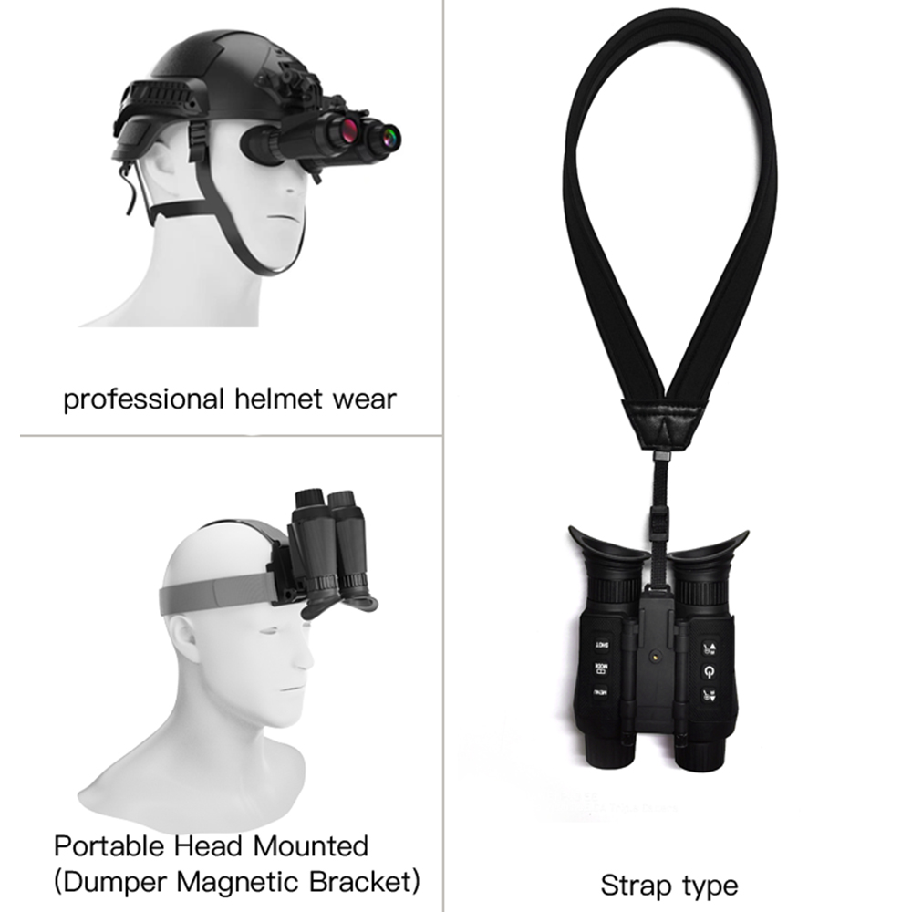 ♦ The product is small in size, light in weight, and can be used in various portable ways. It has a strap hanging around the neck, a strap for portable headwear, and a tactical helmet for headwear