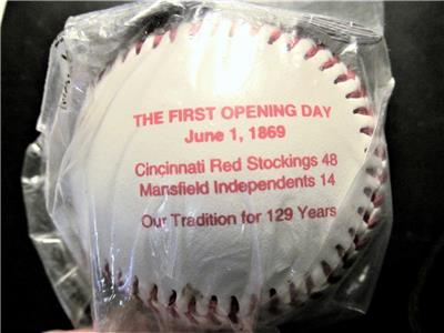 The reverse side commemorates the first Opening Day - June 1, 1869 when the Red Stockings played the Mansfield Independents...winning with a score of 48-14.