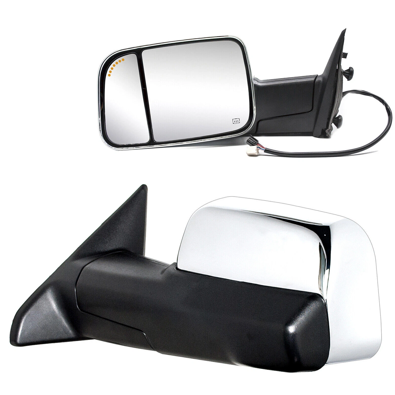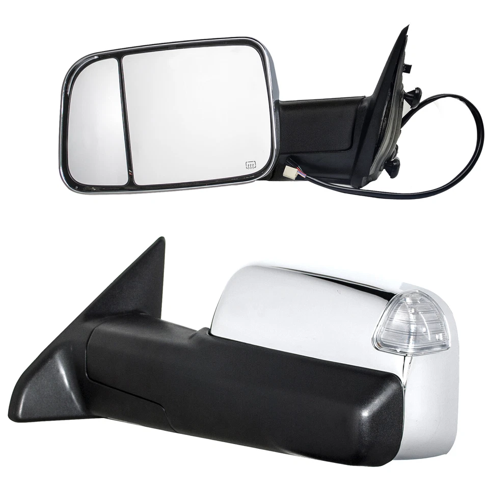 Towing Mirrors For 2012-15 Dodge Ram 1500 2500 3500 Truck Trailer Manual Flip-Up Towing Mirrors for 09-18 Ram 1500 2500 3500 Power Heated Signal Puddle Sensor Towing Mirrors for 09-18 Ram 1500 2500 3500 Power Heated Signal Sensor Chrome Towing Mirrors for 2015-2018 Ram 1500 2500 Power Heated Arrow Lamp Sensor Chrome