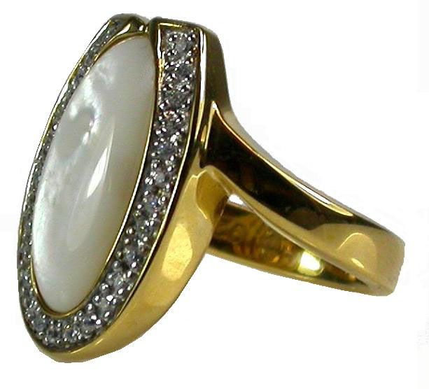 mittig ovaler Perlmuttstein mit Zirkonia umrandet