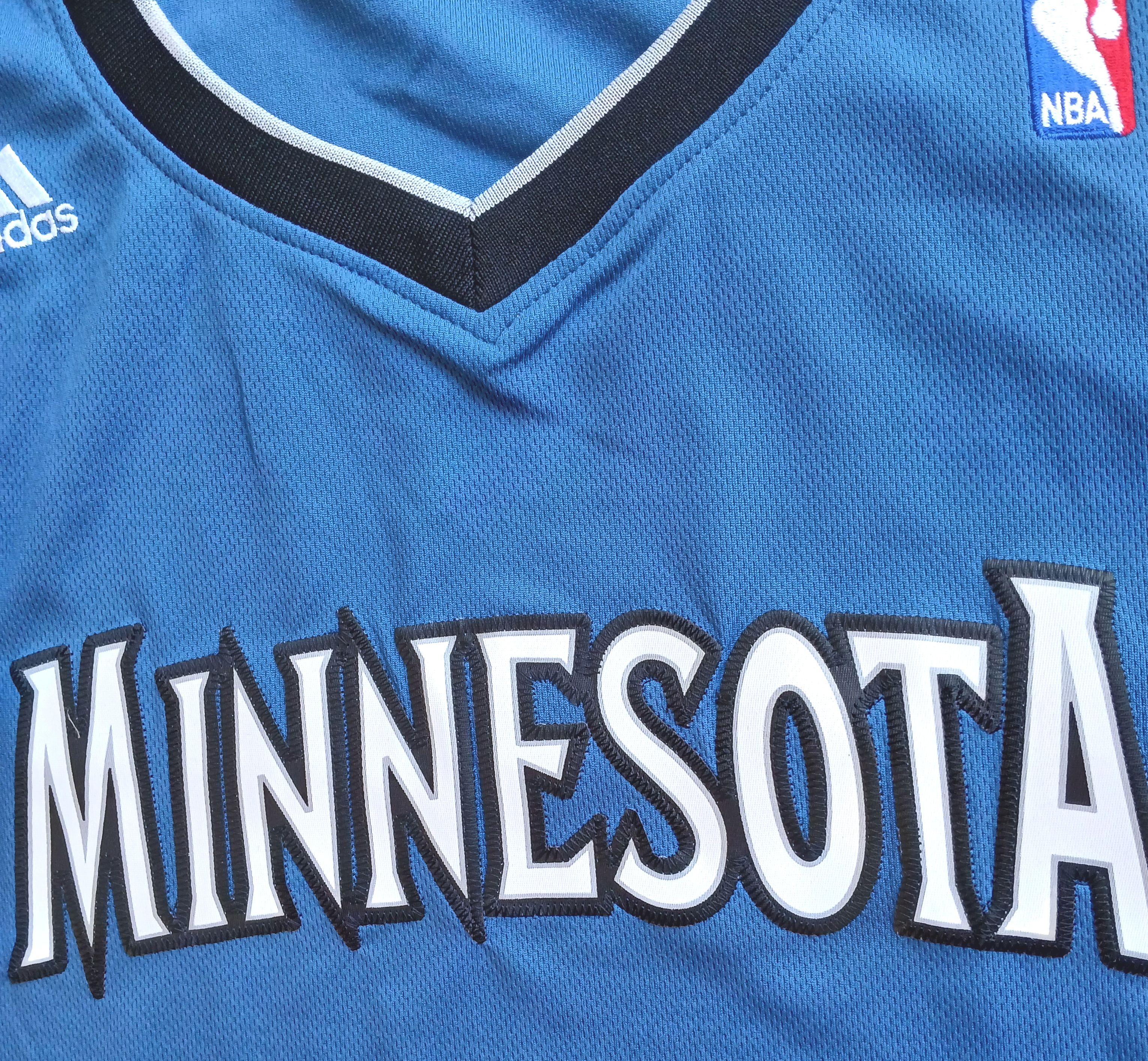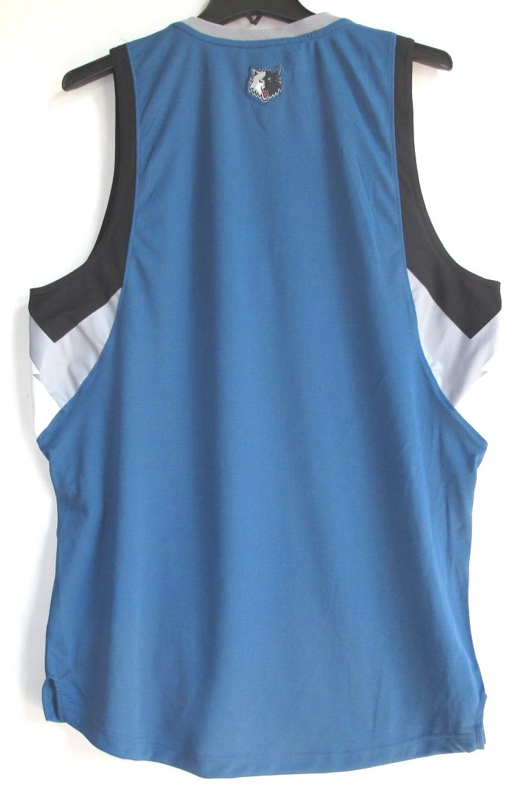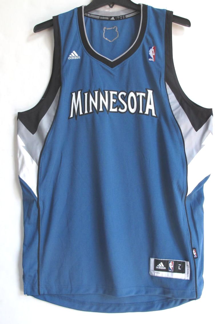 Adidas Minnesota Timberwolves Swingman team jersey.  Jersey has team name on the front but no name and number on the back.  Size Large, with an additional two inches in length.  (Measures about 24 3/4 inches across the chest and about 32 1/2 inches in length - back is about two inches longer.)  Brand new.  This officially licensed Swingman jersey has sewn on, single-layer twill team letters on the front.  Adidas and NBA logos are embroidered on the front also.  Retails for $90.