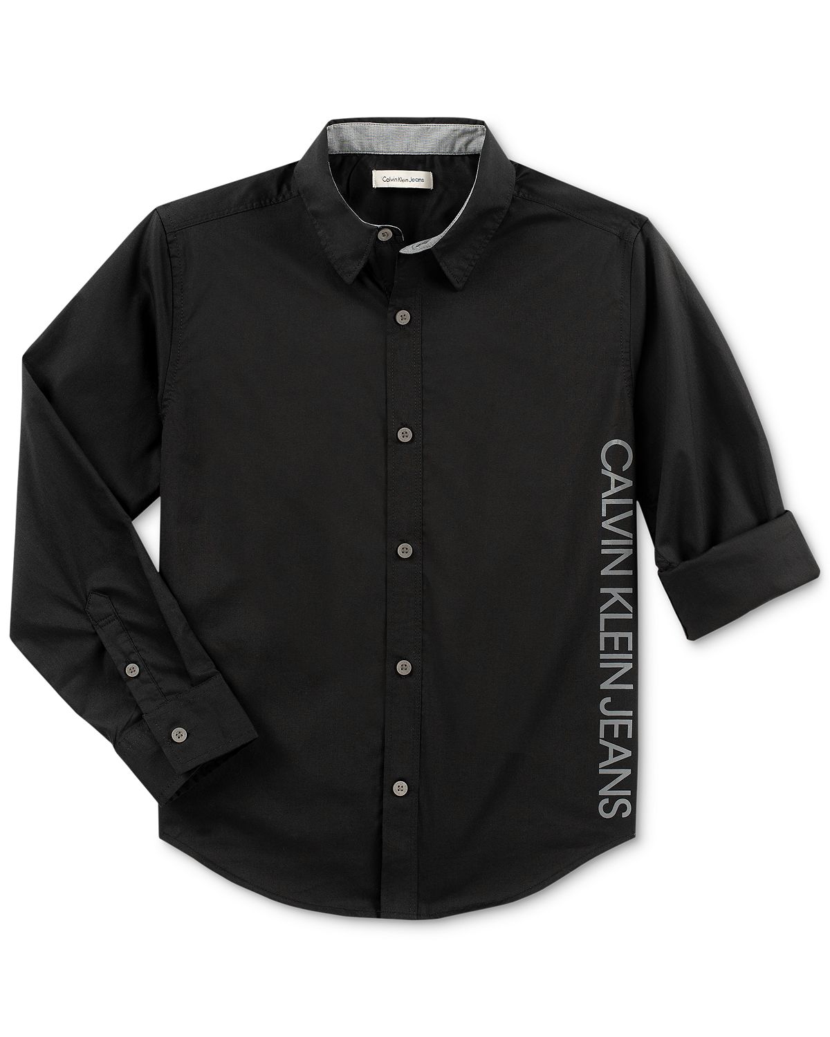 Calvin Klein Big Kid Boys New Icon Cotton Shirt,Black,Small Petite