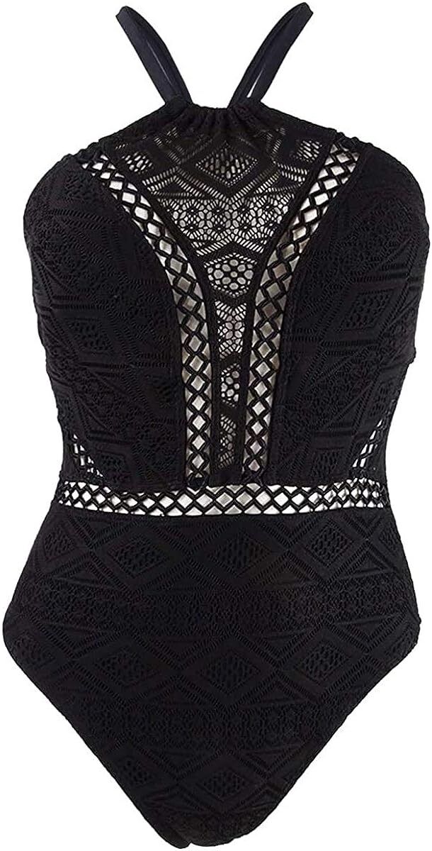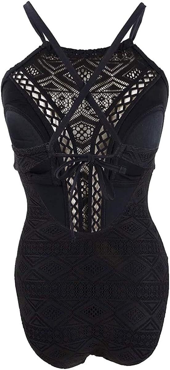 Hula Honey Juniors Crochet High Neck Halter One Piece Swimsuit-Small