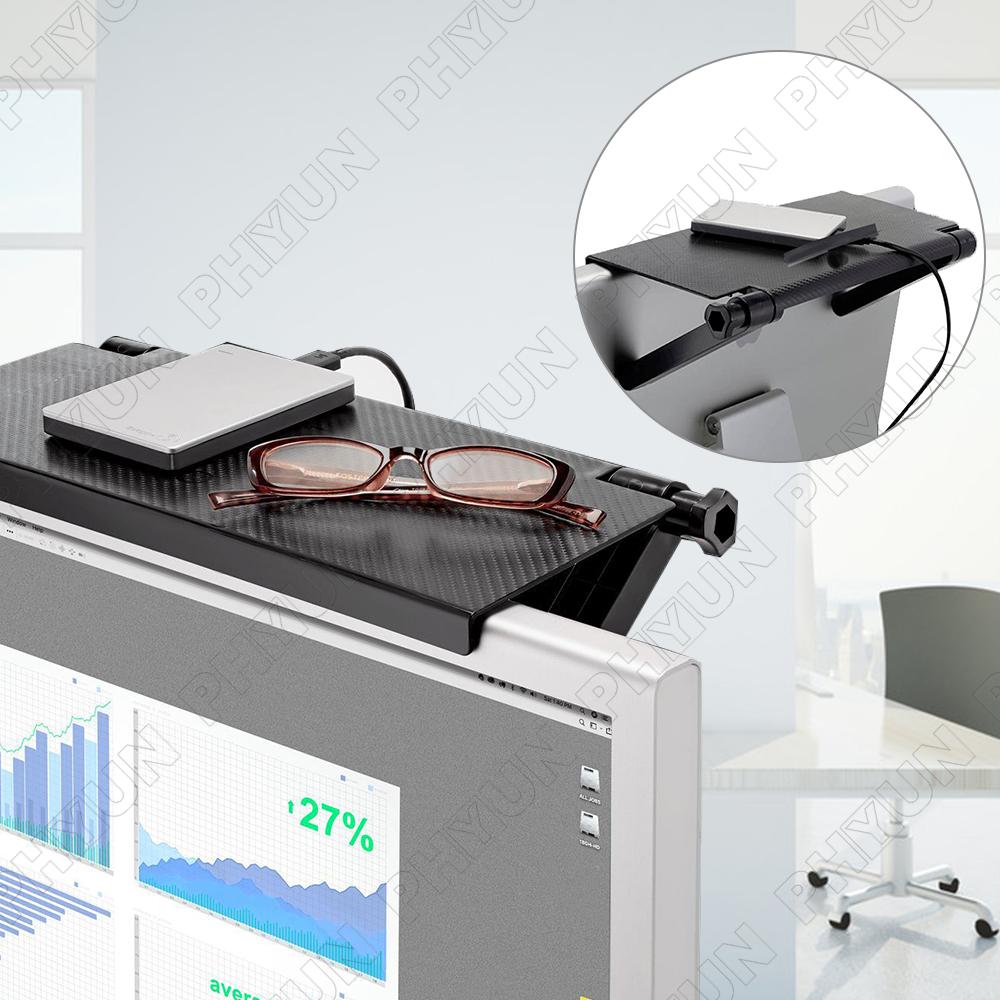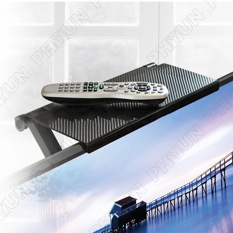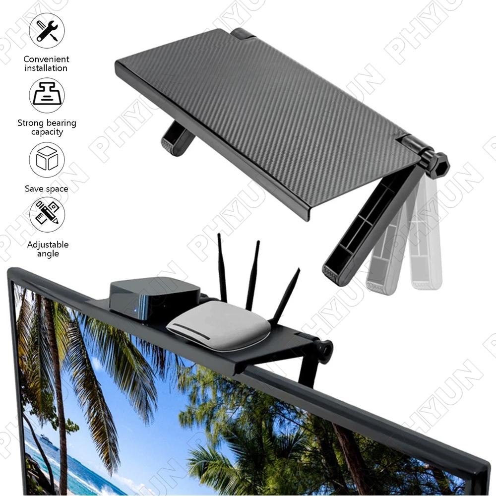 1x Black Adjustable TV Screen Top Storage Shelf Organizer Bracket 33x 16x 2.5cm