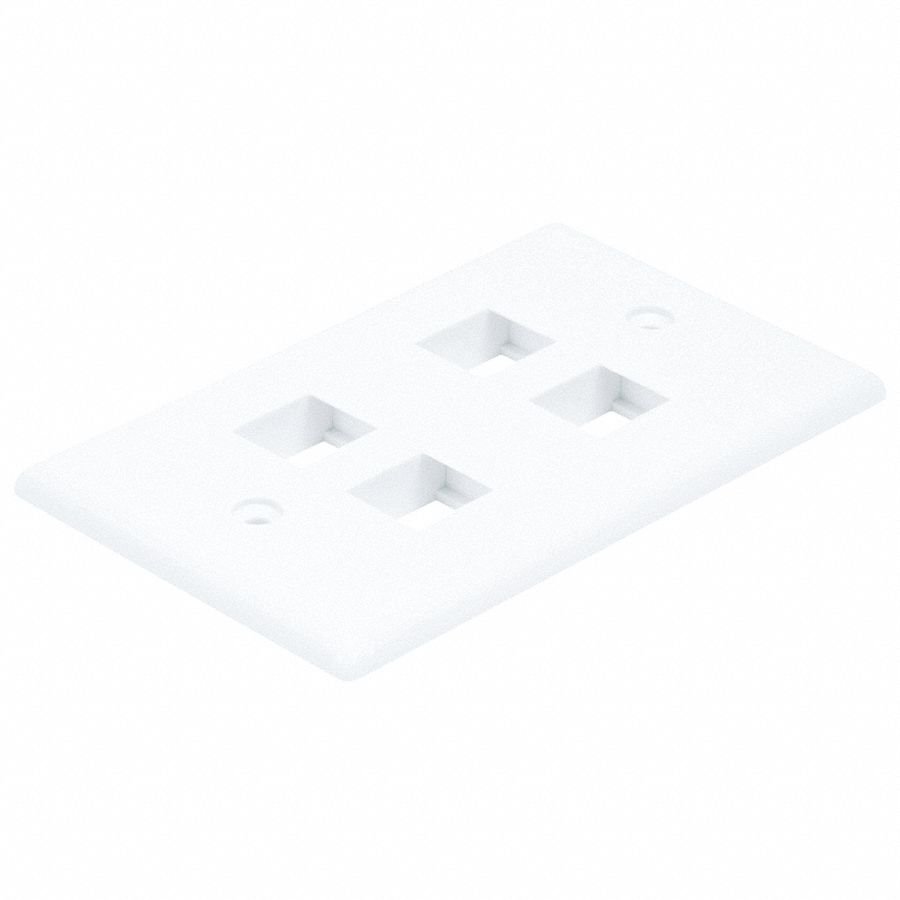 Wall Plate, Product Type Wall Plate, Wallplate Type Telephone, Color White, NEMA Enclosure Rating Not Rated, Compatible Connector Type RJ45, Number of Gangs 1, Outlet Orientation Horizontal, Number of Ports 4, Compatible Cable Performance Category Not Applicable, Material Plastic