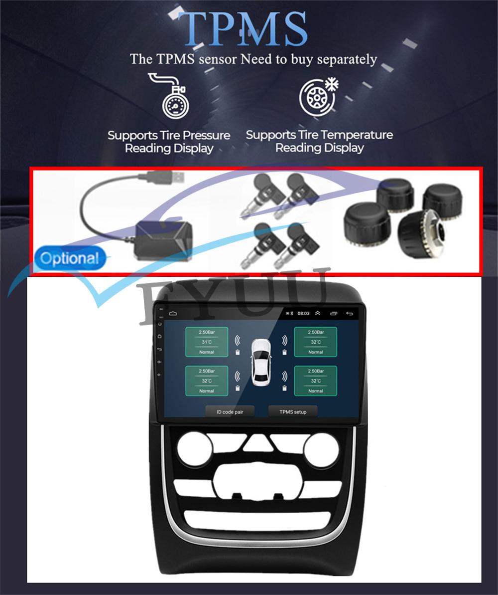 Additional | - Textbook: Could change font, font color, background color, bookmark, reading E-book while listening music - Photo Viewer: Support JPS, BMP, PNG, GIF etc. format. play by revolve, Powerpoint Support 4096*4096 Pixels - Wallpapers: 5 live wallpapers, 17 standard wallpapers, support DIY wallpaper from Gallery - APK Installer: Support Android Package installer - Support Torque Pro(OBD2 &Car): Yes, you can connect a Bluetooth/WIFI OBD2 Scanner Tool(Bluetooth version ≥ 4.2) to use this function - Support Mirror Link function: Yes, support wireless and wired screen mirroring from iPhone and android smartphone - Support TPMS: YES (Not Included) -Support Steering Wheel Control;Yes |