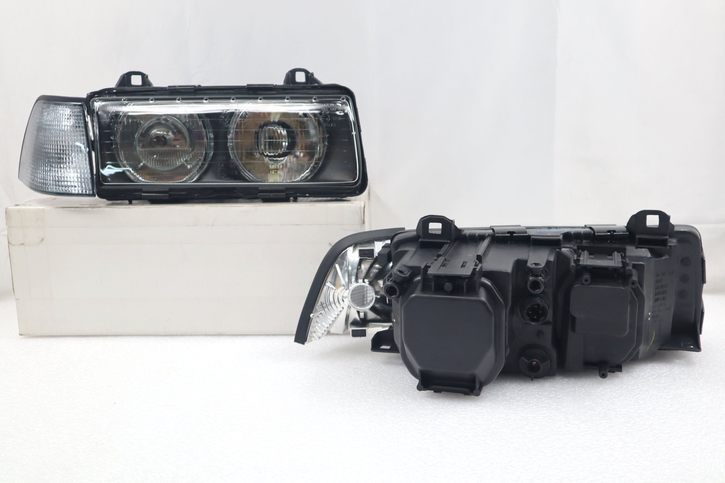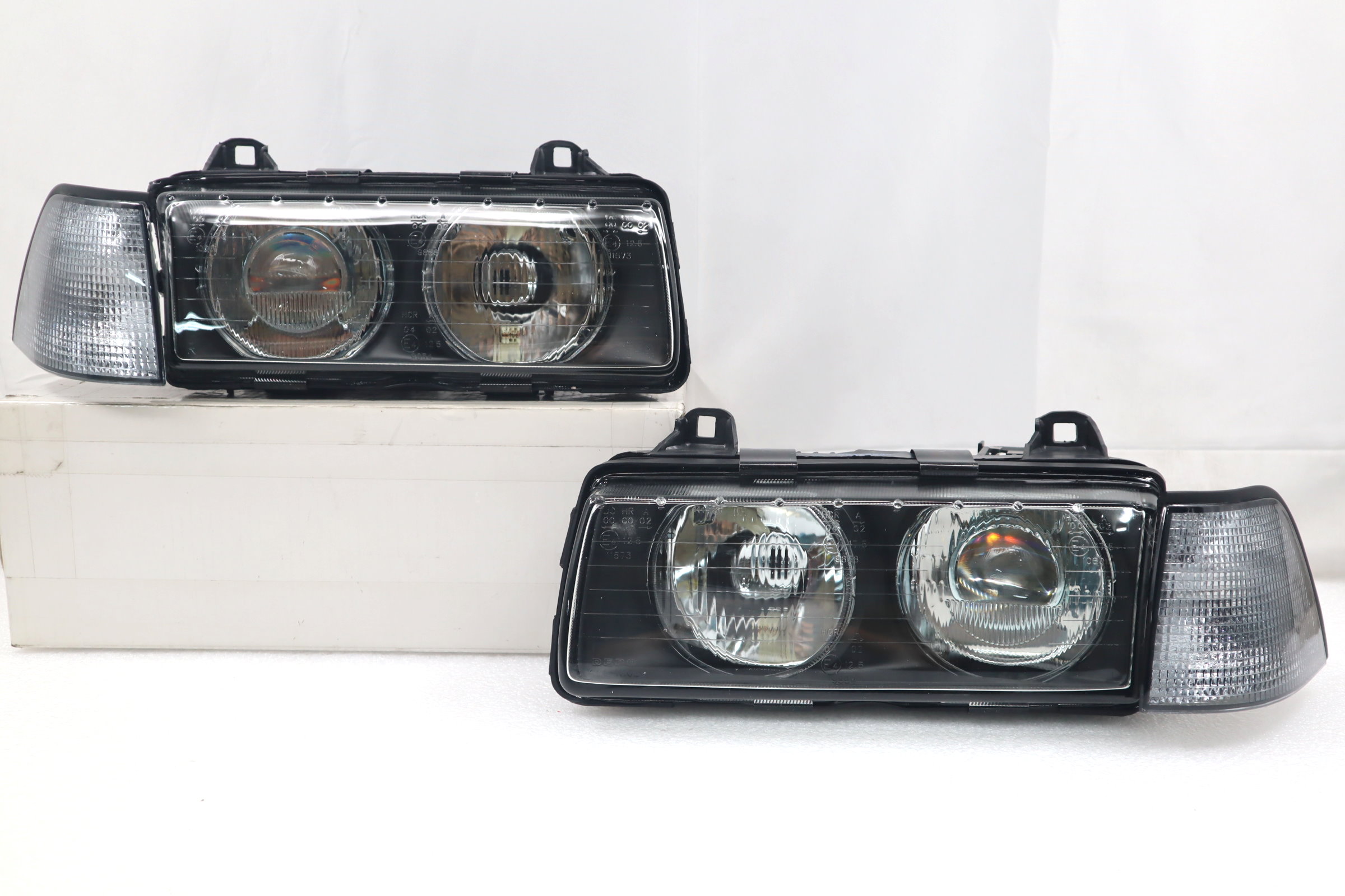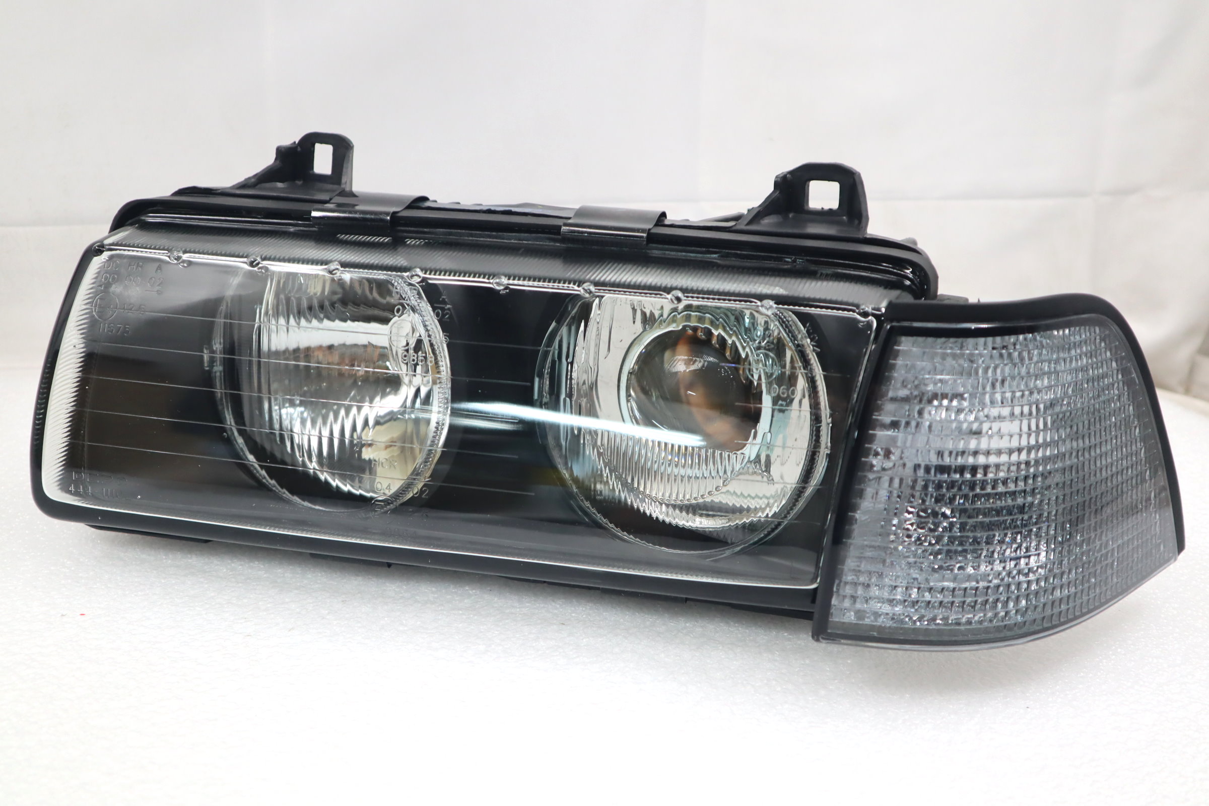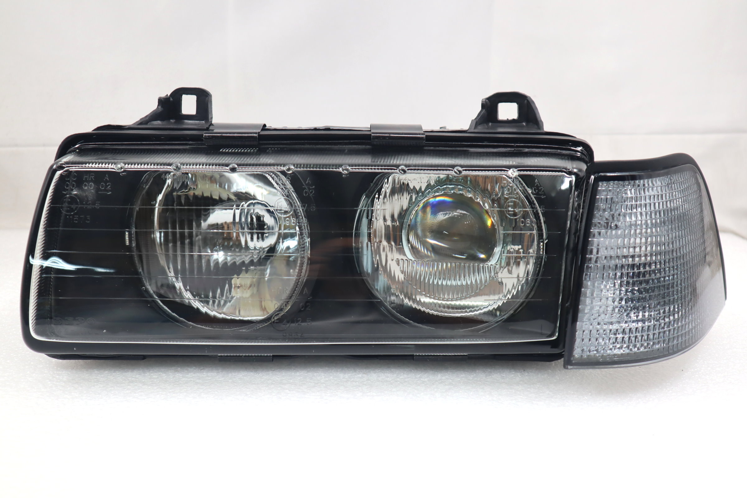 This listing is for a BRAND NEW set of Hella Style Euro Ellipsoid Glass Lens Projector Headlight + Euro Smoke Corner Signal Lamp