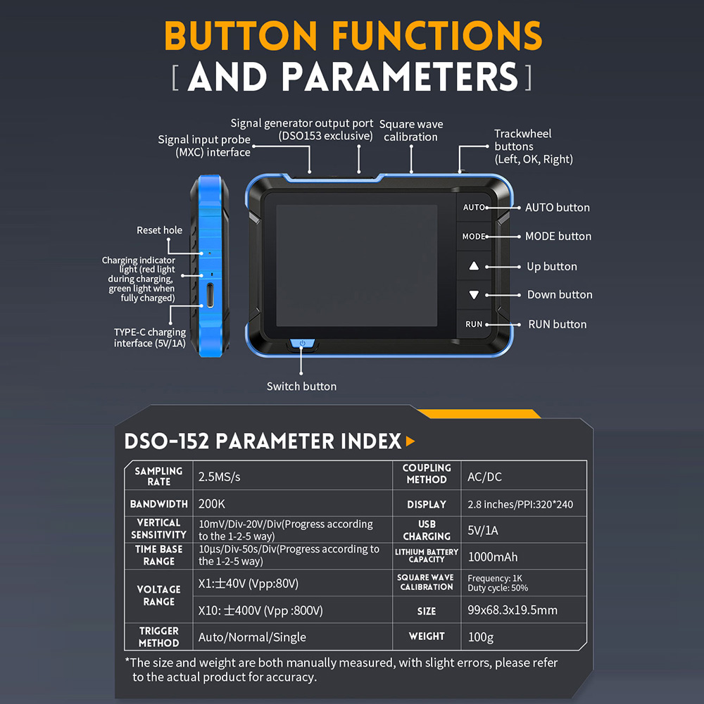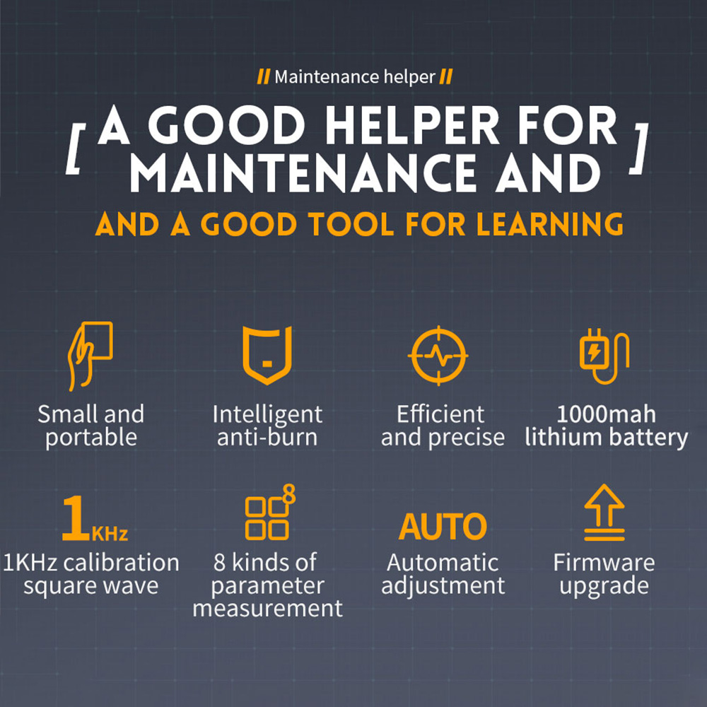 2. It is also equipped with a multi-function signal generator (10KHz). Equipped with a 2.8-inch 320 * 240 resolution high-definition LCD screen, built-in 1000mAh high-quality lithium battery, fully charged can be used for about 4 hours