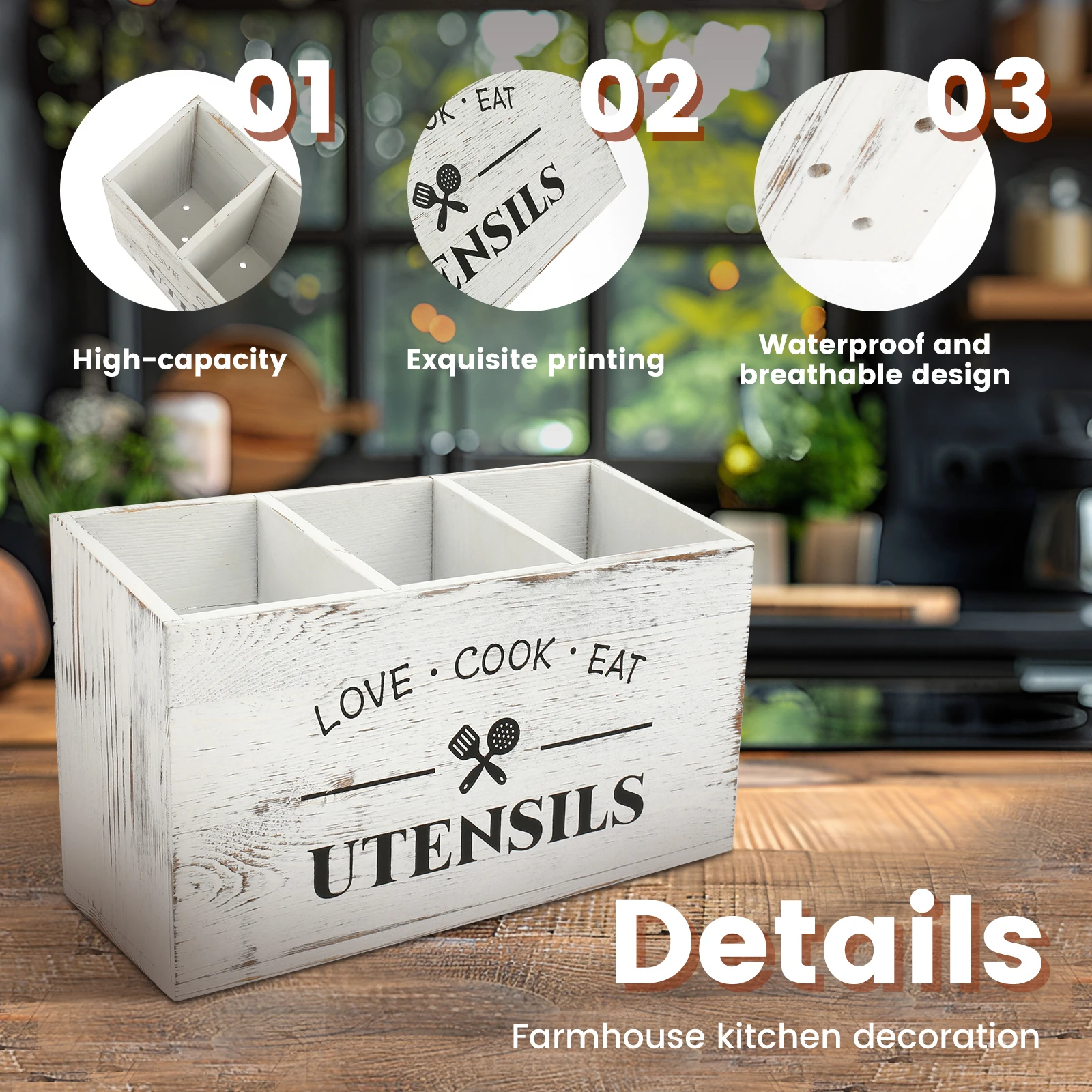 5.Utensil Holder Size:The large utensil holder measures 30x12x17.5 cm, suitable for any kitchen, easily meet your daily needs