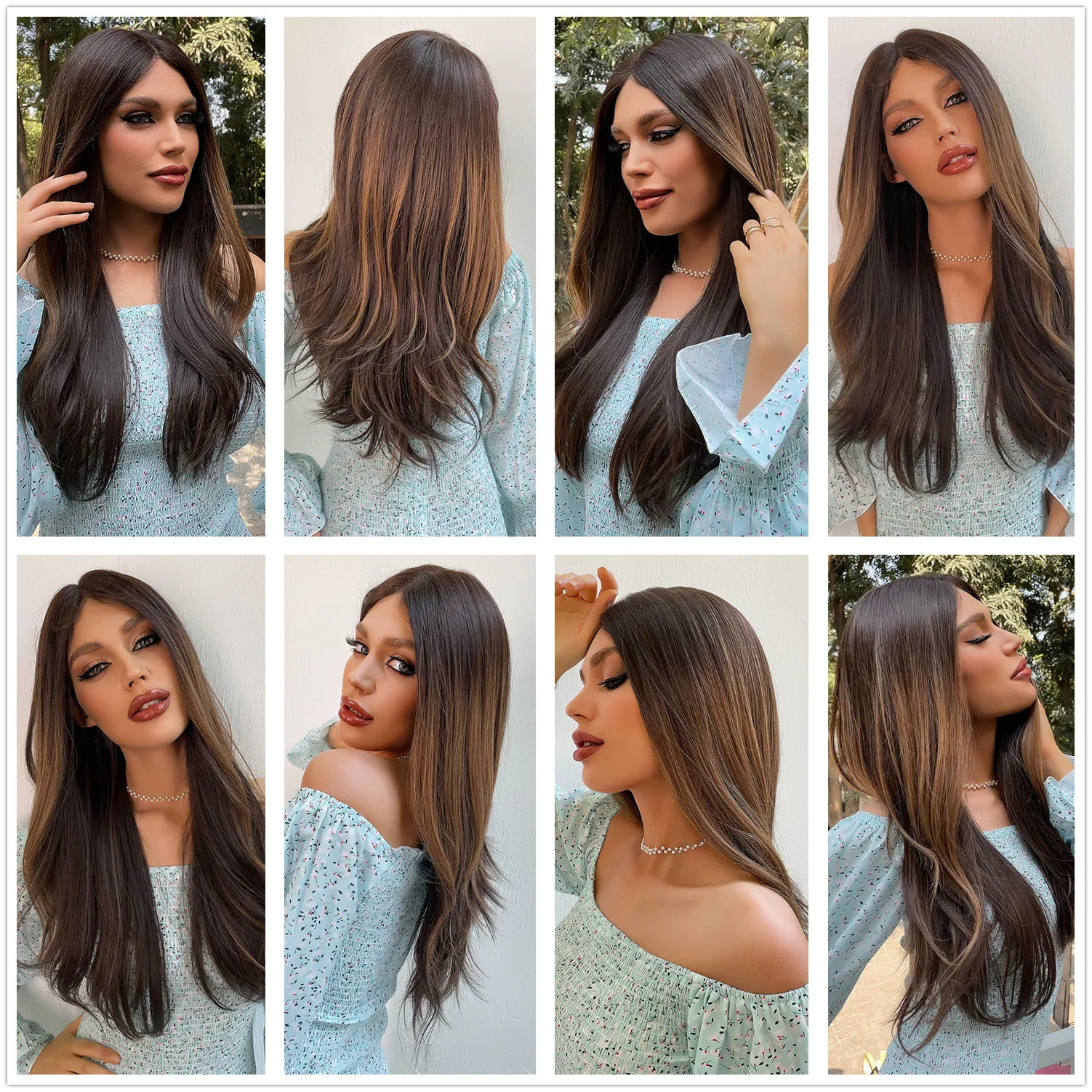 ALAN EATON Long Wavy Dark Brown Ombre Synthetic Lace Front Wigs for Women Middle Part Lace Front Wig High Density Heat Resistant