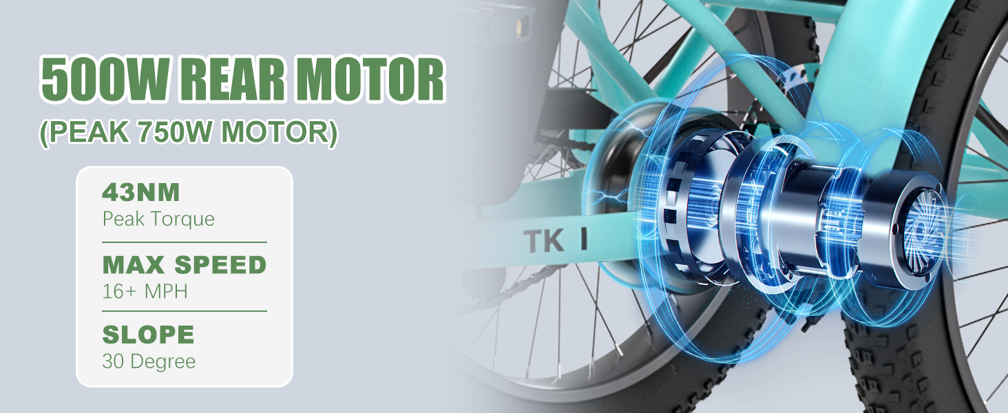 Folding electric trike with big wheels comes with a 500W(Peak 1000W) powerful brushless BAFANG motor, providing a top speed of 15.5 MPH. The removable 48V 14.5 Ah battery ensures up to 45 miles of range, whether you need pedal assistance or prefer a ride without it. Experience the perfect blend of power and performance with our 3 wheel electric bicycle. SHIMANO 1-speed shifter is designed to function seamlessly in both electric and pedal-assist modes