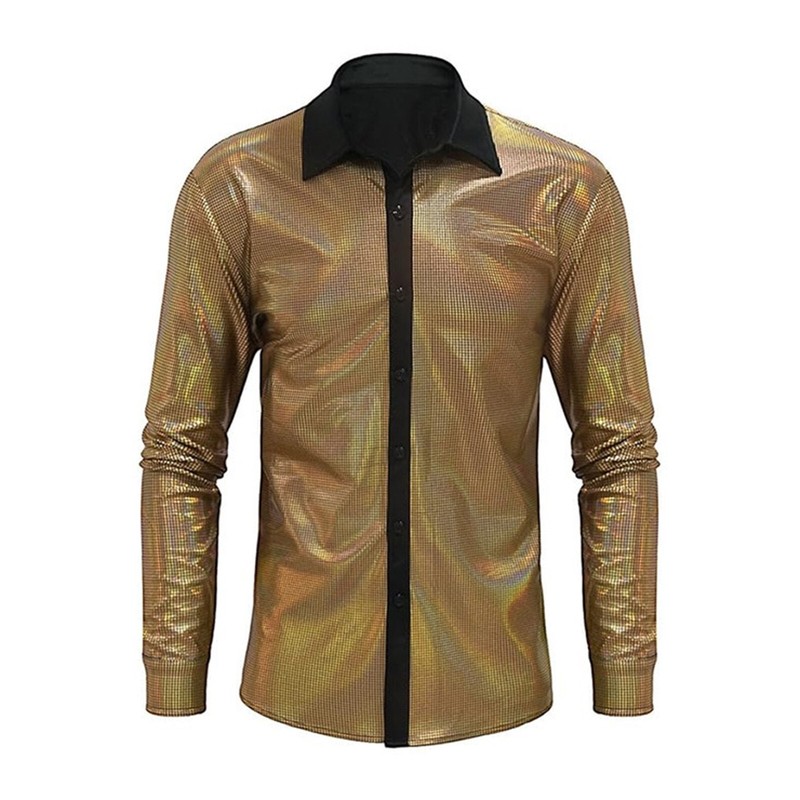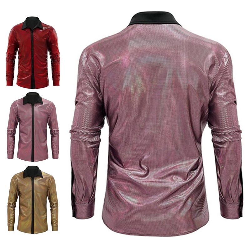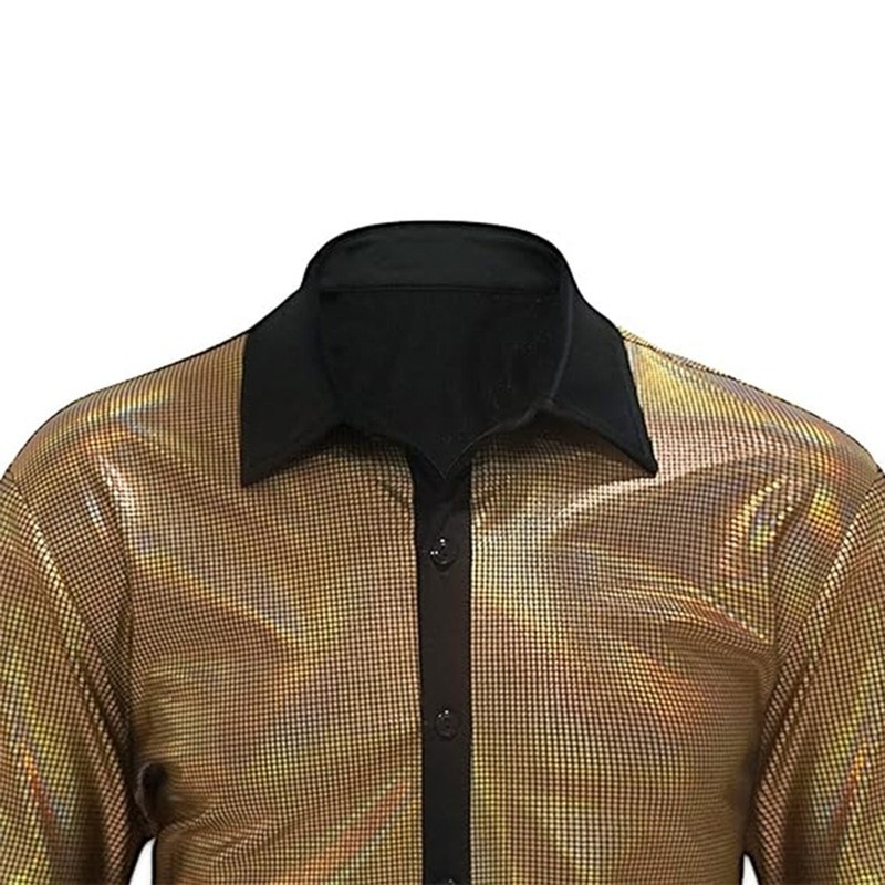 The metallic shiny fabric gives the shirt a trendy and eye-catching look, perfectly in line with the current fashion trend of bold and shiny elements.
